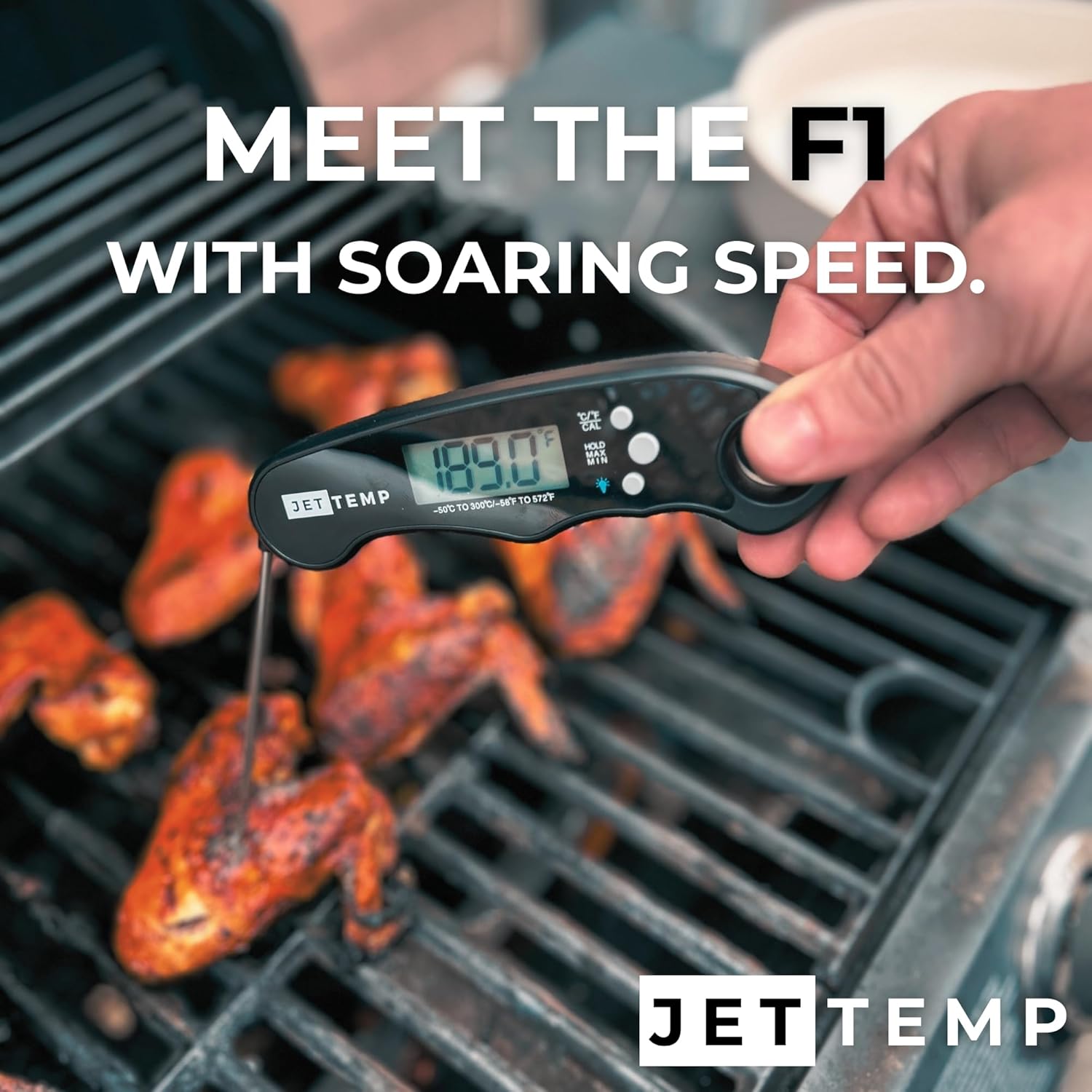 F1 Essential Kitchen Thermometer for Cooking, Grilling, BBQ, Smoker, Air Fryer, Candy, Oil Fry, Kitchen Food Probe, Backlit Display, Foldable, Water Resistant