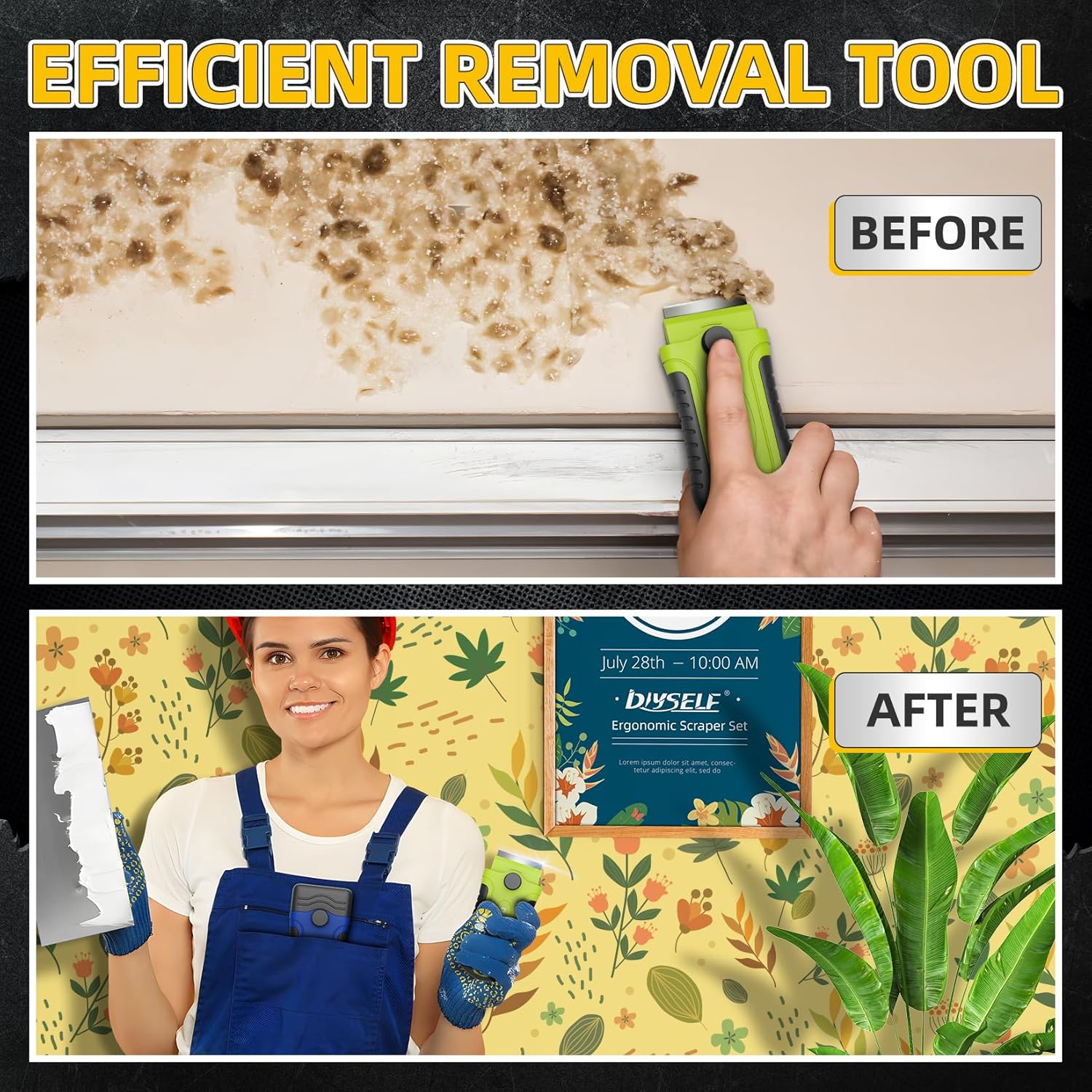 - Effortless Sticker and Residue Removal: Tackle stubborn stickers and residue effortlessly with our razor scraper. The non-retractable design provides stability, while the plastic razor blades delicately remove unwanted materials without damaging surfaces. The ultimate sticker scraper tool for a clean, clear finish