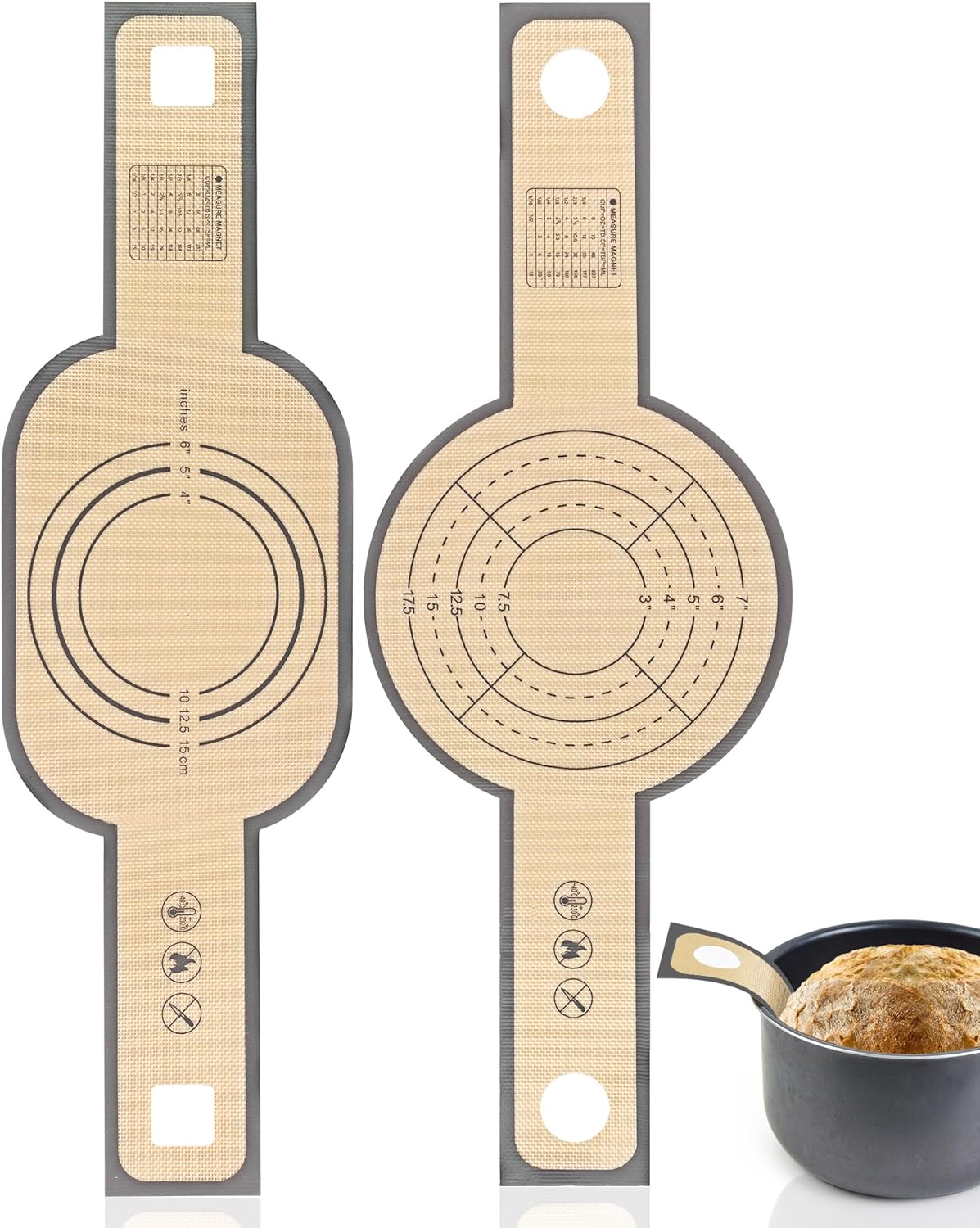 - High temperature resistance:The smooth surface ensures a uniform heat distribution with no burnt or soggy bread bottoms. Our silicone bread sling are just like most high-quality baking mats, made of silicone and fiberglass. This ensures the mats can use up to 480°F, our sourdough silicone bread sling are pliable and strong