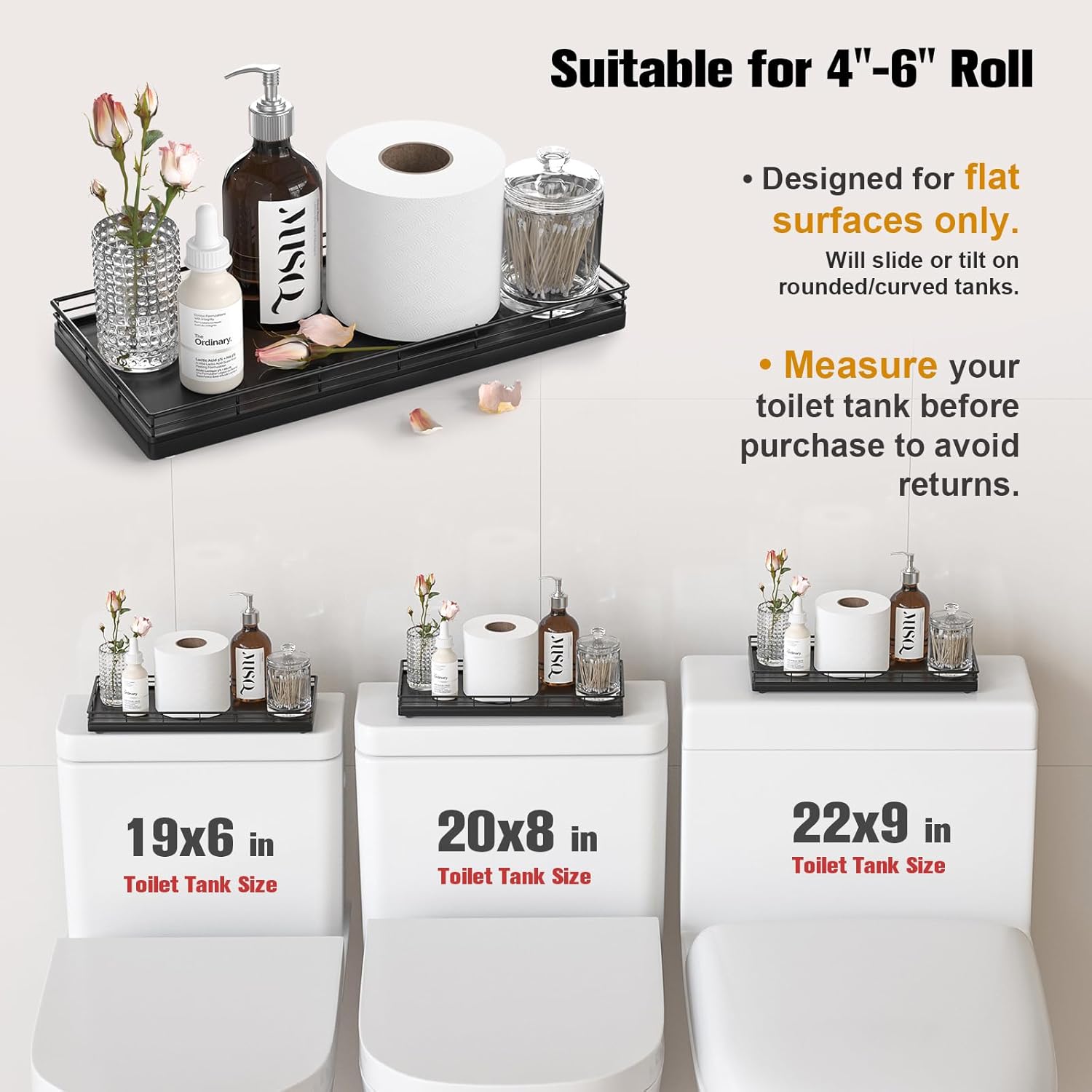 - Unique Charm: This 13 inches large wood rectangle toilet tank tray ensures durability and increased load-bearing capacity; Elevate your space with a unique appearance featuring a combination of iron mesh edges and rustic brown wood board; Distinctive and captivating grain pattern adds an exquisite touch of elegance and sophistication; This bathroom toilet organizer tray blends modern minimalism with farmhouse charm seamlessly