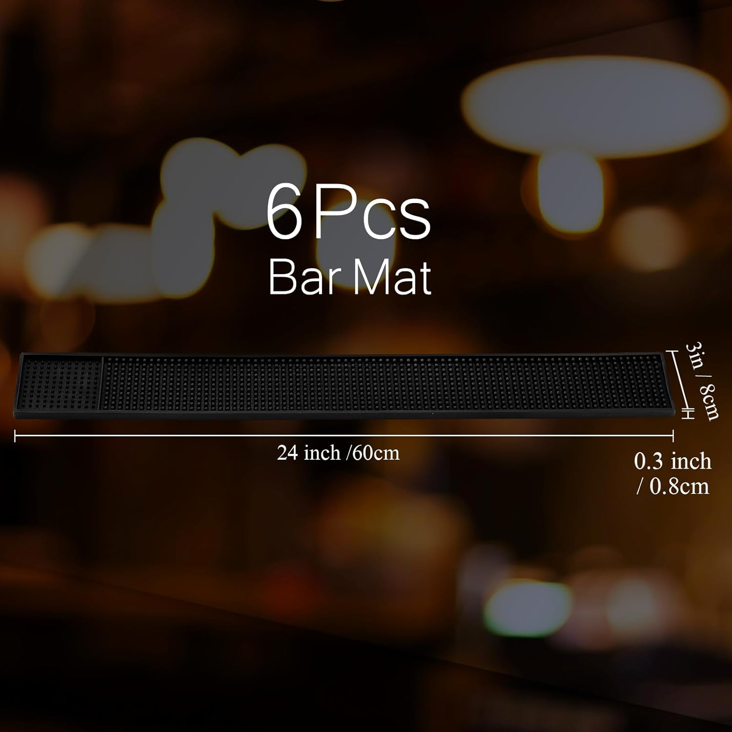 Tioncy 6 Pcs Bar Mat for Countertop 24 x 3 Inch Non Slip Rubber Mat Service Spill Cocktail Bartending Restaurants Barbershop Clippers Salon Tools, Black