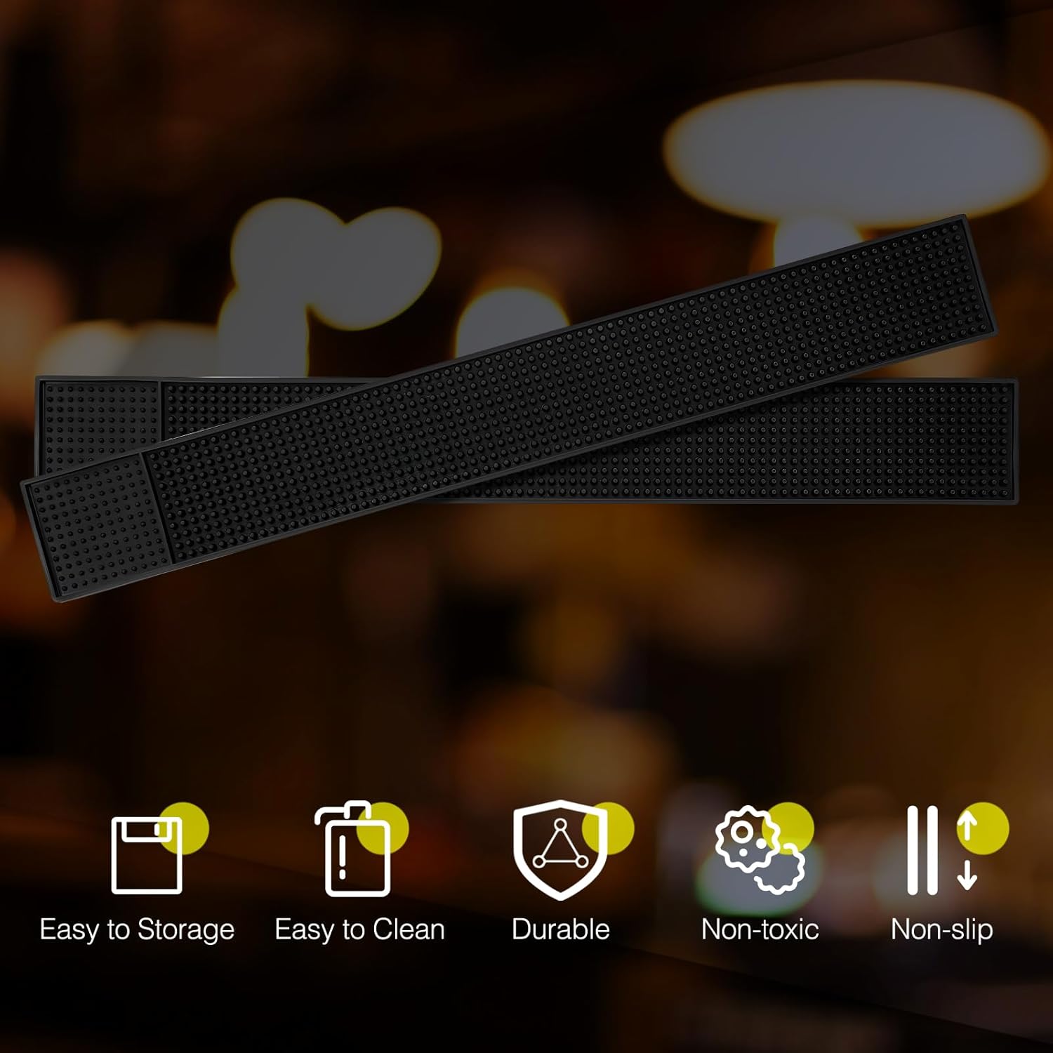 - Anti Slip and Heat Resistant: the back of our bar mat has a sticky coating, it won't move around when you place it on the counter, doubles as a heat insulator, protects your bar or countertop from spills and hot drinkware