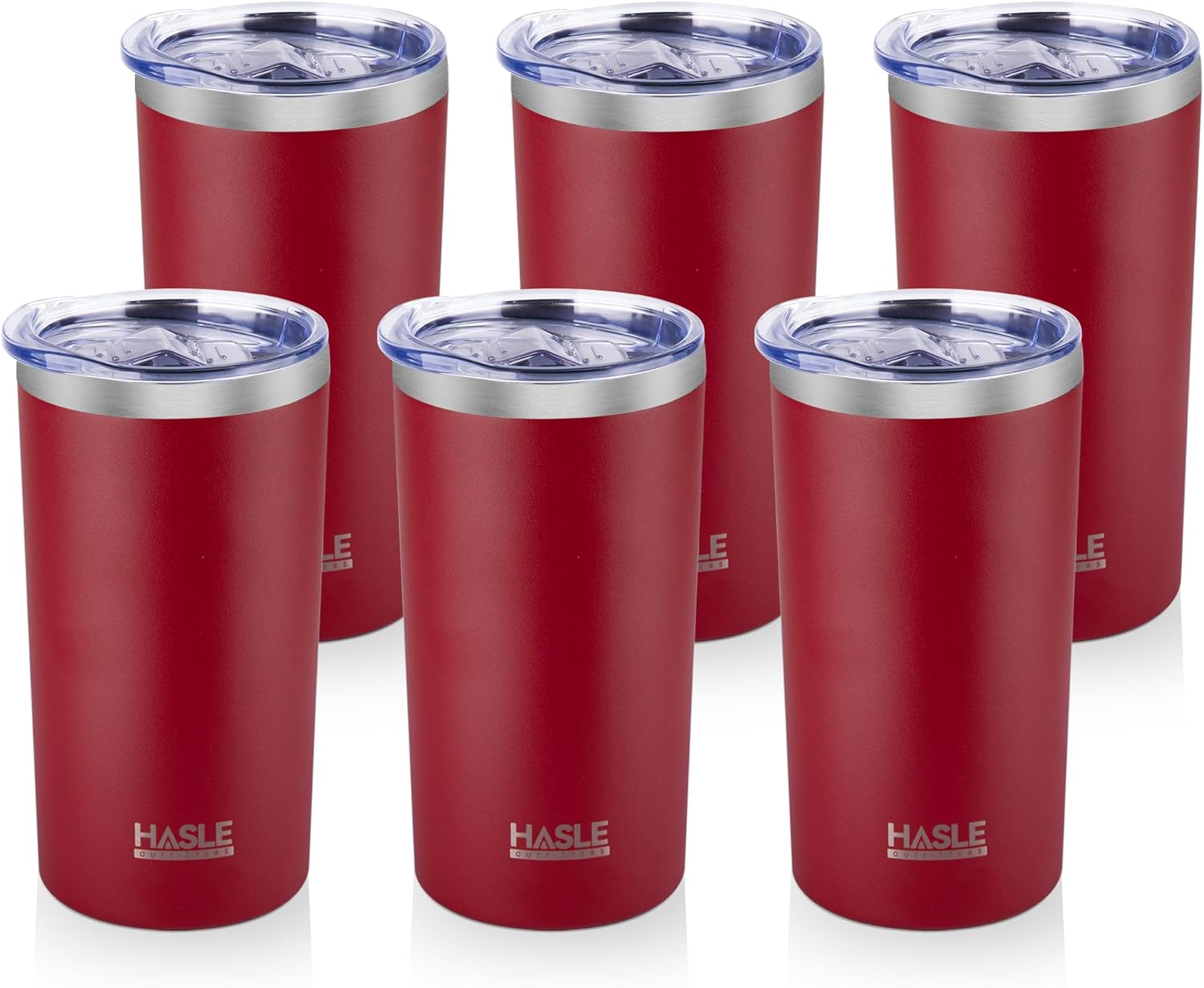 HASLE OUTFITTERS 12 oz Skinny Tumbler, Stainless Steel Insulated Slim Tumbler set bulk with Lid, Reusable Double Wall Travel Coffee Mug, Durable Powder Coated Travel Water Cup(Red,6)