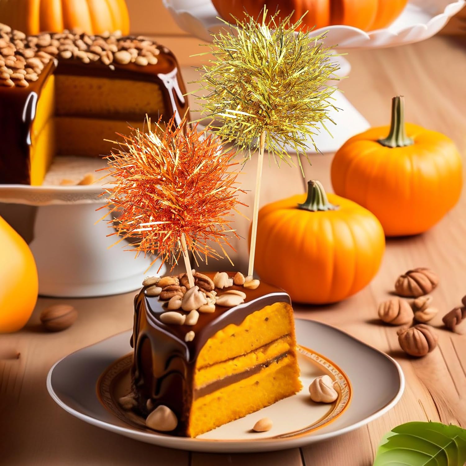 Chinco 100 Pcs Foil Firework Cupcake Toppers Sparkle Tinsel Cake Toppers Cake Decoration Cocktail Fruit Toothpick for Birthday Wedding Graduation Party (Silver, Red, Orange, Gold)