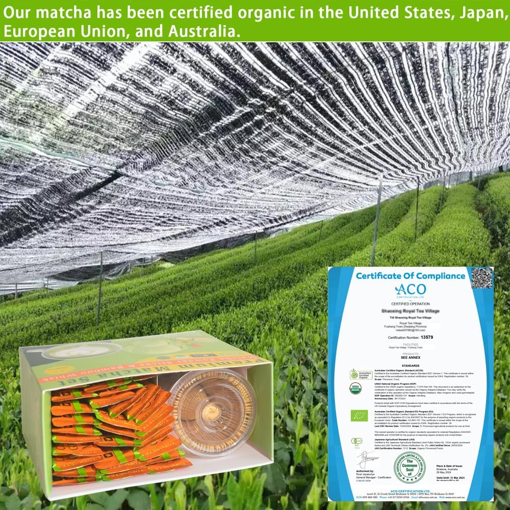 - Our matcha powder is certified organic by the European Union, the United States Department of Agriculture, and Japan Agricultural Standard,It is also certified by FSSC 22000, an international food safety standard that ensures the safety and quality of our product.