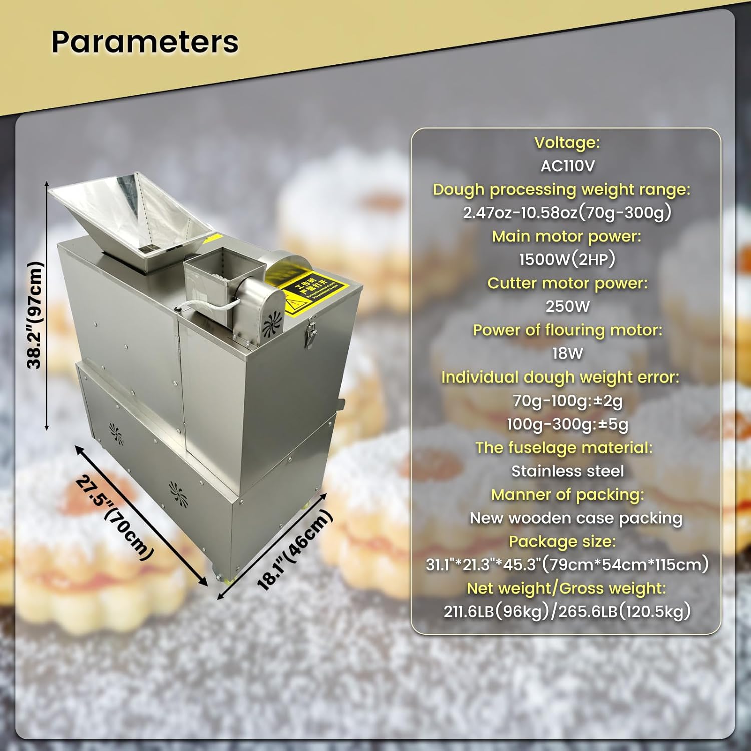 - 【Automatic and Efficien】 The Electric Dough Divider is an automatic machine that efficiently divides dough for dumplings, steamed stuffed buns, pizza, bread, biscuits, desserts, and more. Save time and effort in dough preparation.