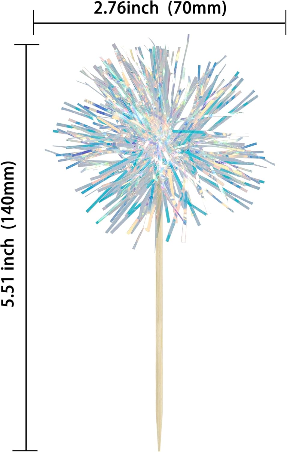 Gyufise 30Pcs Foil Firework Cupcake Toppers Sparkle Tinsel Cake Toppers Tinsel Drink Cake Decoration Cocktail Picks for Birthday Wedding Graduation Party Supplies Laser White