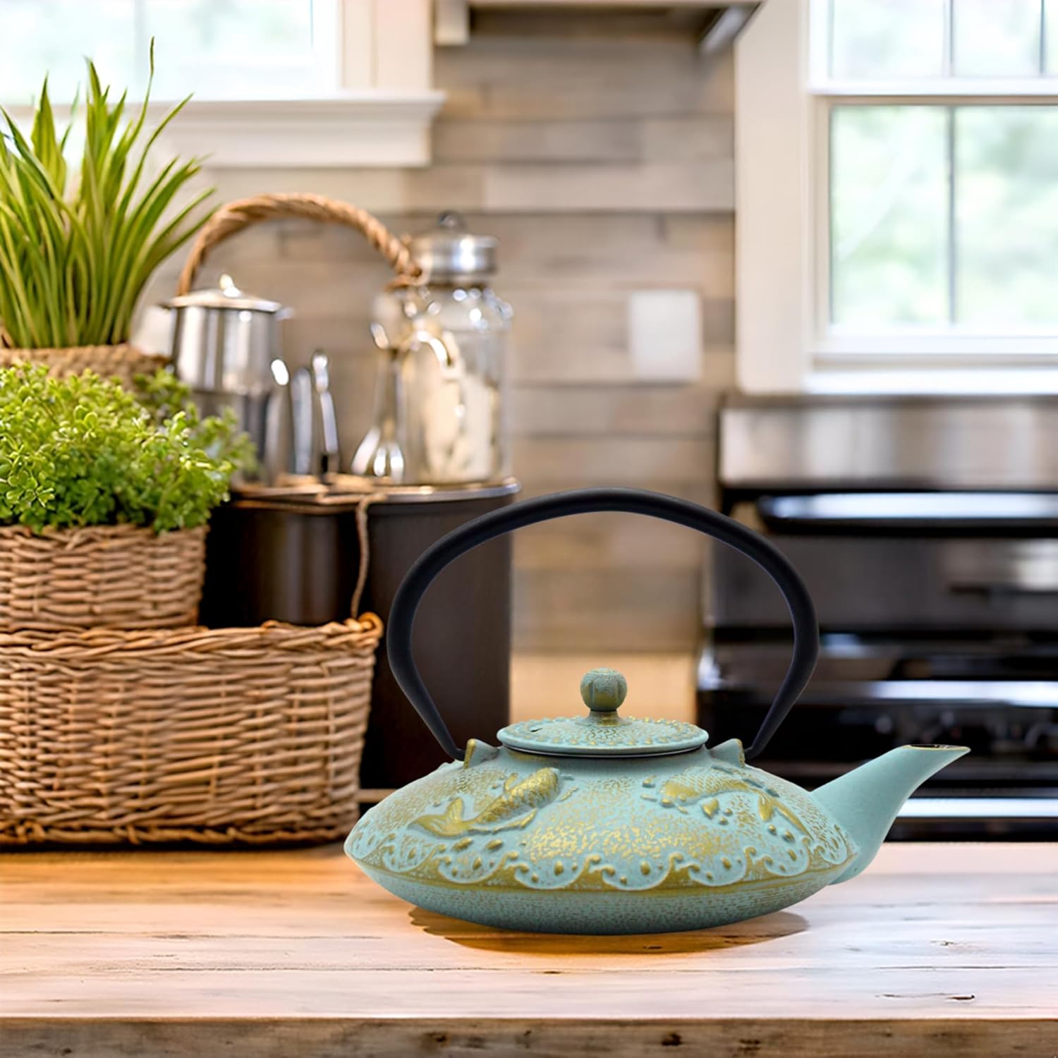 - The cast iron kettle have a removable stainless steel mesh infuser for steeping loose leaf teas.