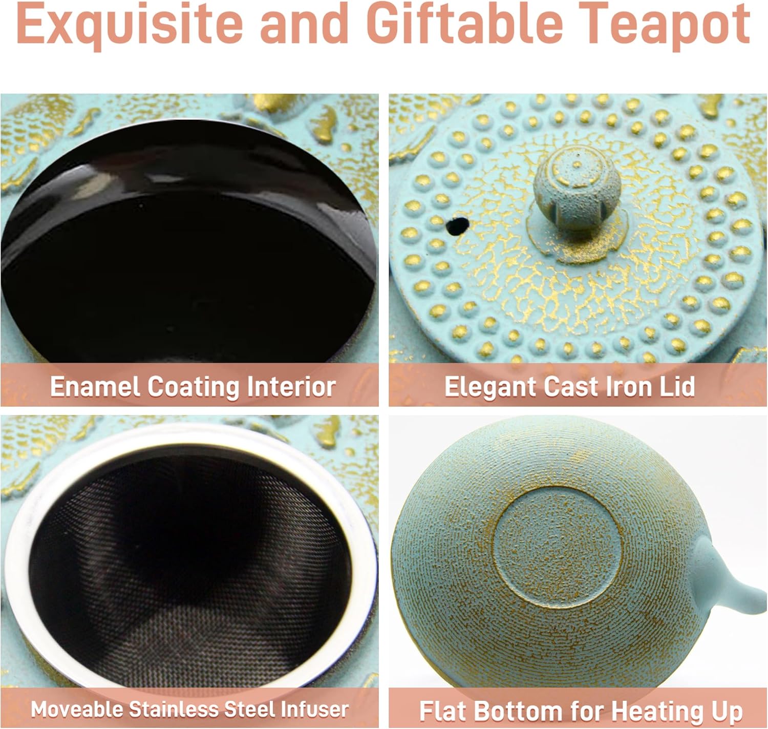 - The heavy cast iron teapot can improve water quality,enhance tea taste and retain heat better.