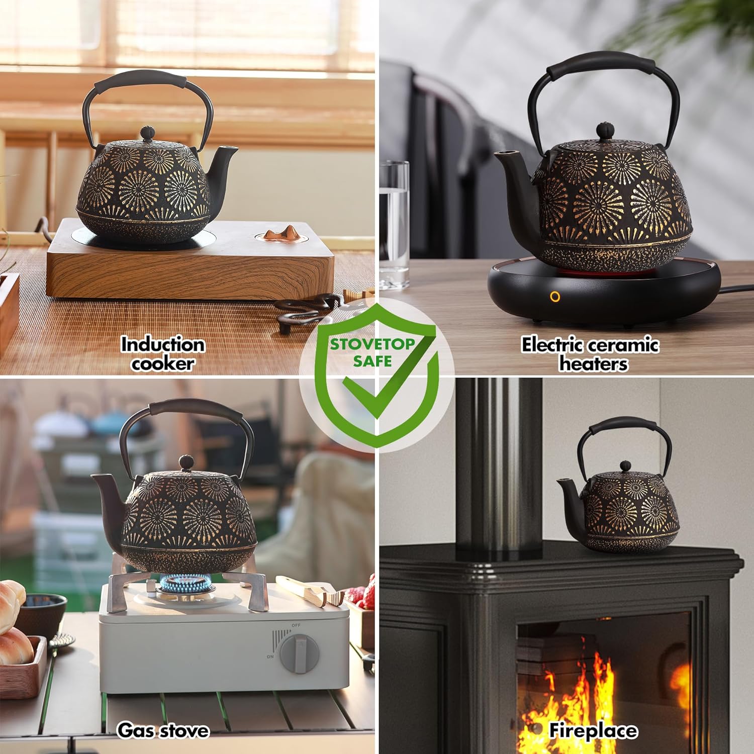 - Versatile Use: This 40-ounce Japanese teapot is suitable for boiling water, steeping tea, and making coffee, serving 3-4 people with 3-5 cups. It is compatible with induction cookers, electric stoves, natural gas stovetops, as well as firewood stoves and gas stoves for outdoor camping, with the use of a low flame recommended.