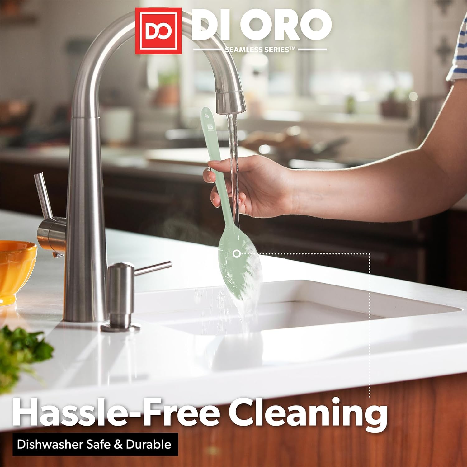 DI ORO Silicone Spoons for Cooking - Large Kitchen Spoons for Mixing, Serving, & Stirring - 600°F Heat-Resistant Non Stick Utensils – Big Solid & Slotted Basting Spoons - Dishwasher Safe (2pc, Sage)