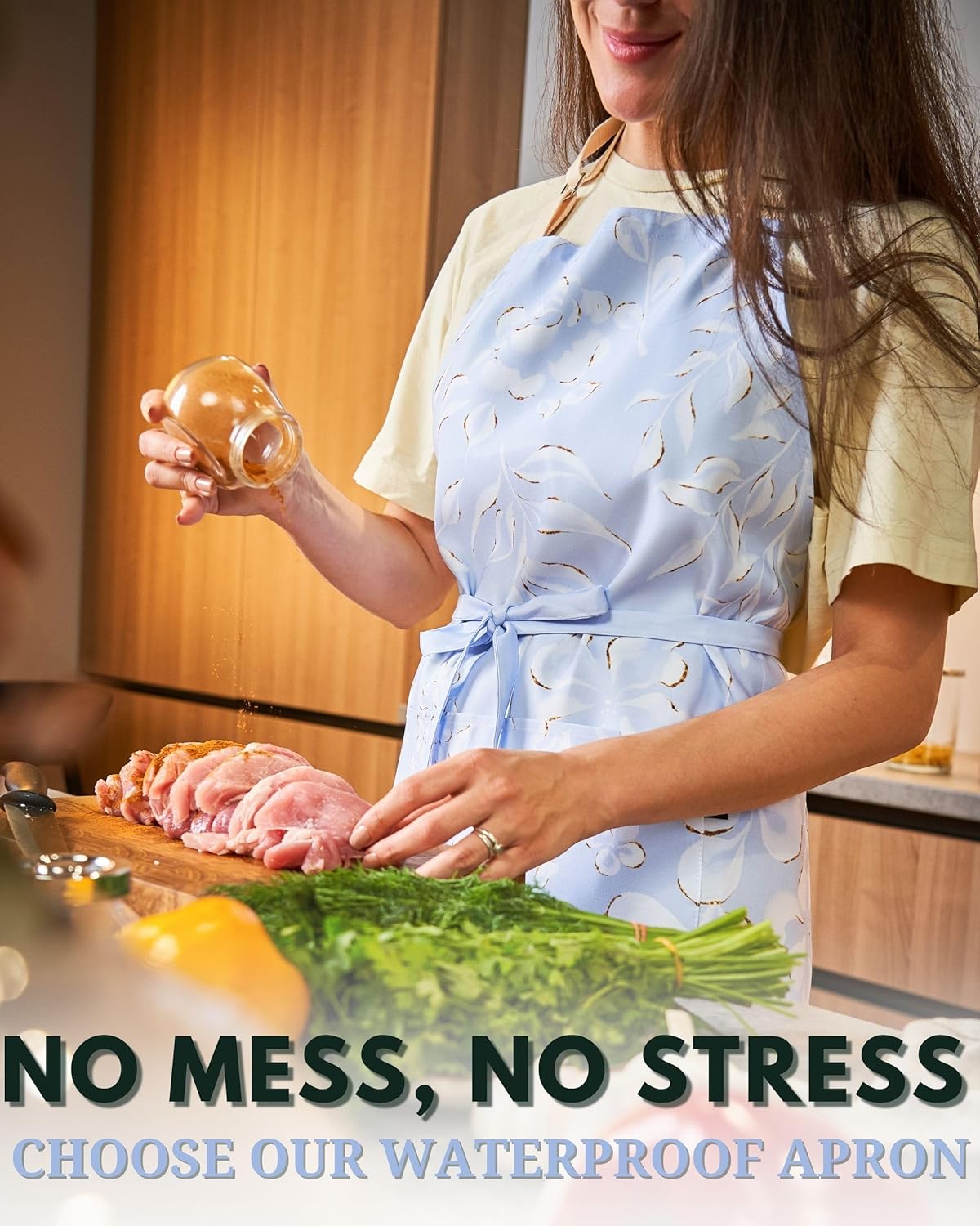 - ✔️FLORAL DESIGN: A stylish Blue Floral Stain Resistant Apron for women with pockets.