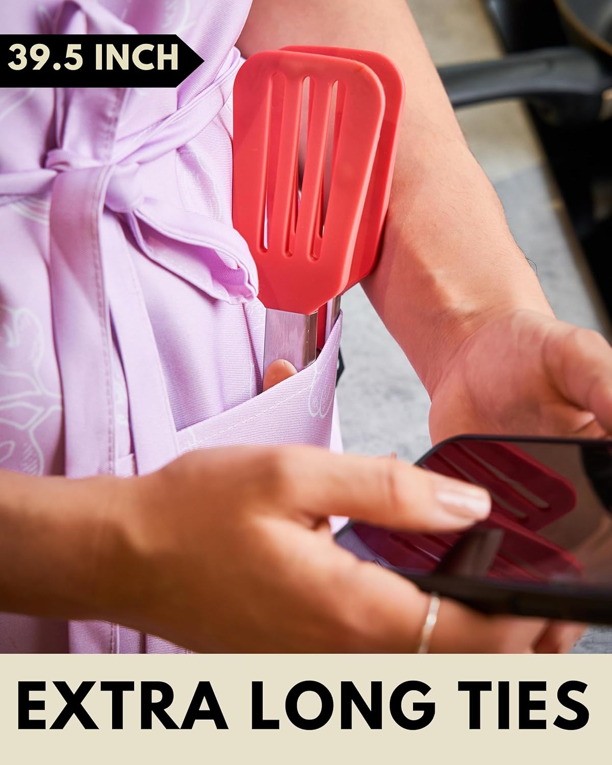Premium Adjustable Cooking Aprons for Women with Pockets| Poly-Cotton Waterproof Kitchen Apron| Cute Floral Design, Long Ties