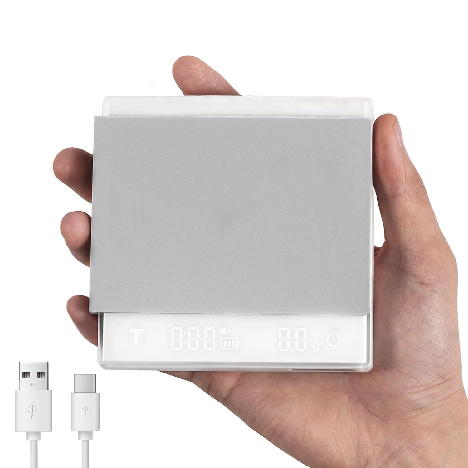MHW-3BOMBER Mini Coffee Scale with Auto Timing,Electronic Espresso Scale,Type-C Rechargeable Coffee Weight Scale,Tare Function,g/oz,LED Display,Digital Scale for Coffee/Kitchen,White ES6034W-OS