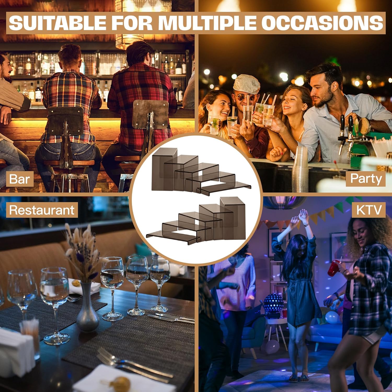 Goabroa Acrylic Display Risers,2 Sets 10 Pcs Rectangular Display Stands for Vendor Events, Acrylic Display Shelves for Figures, Cupcake, Wine Glass and Handbag display, Transparent Black
