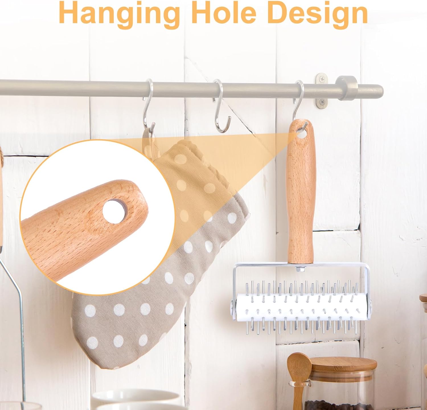 - 【TIME-SAVER】This dough docking tool features staggered sharp spikes that can prevent blistering and puffing by creating surface holes just simply press and roll the roller over the dough. It saves your time and effort by speeding up the process of poking holes, much more efficient than a fork. You can easily make a delicious baking food.