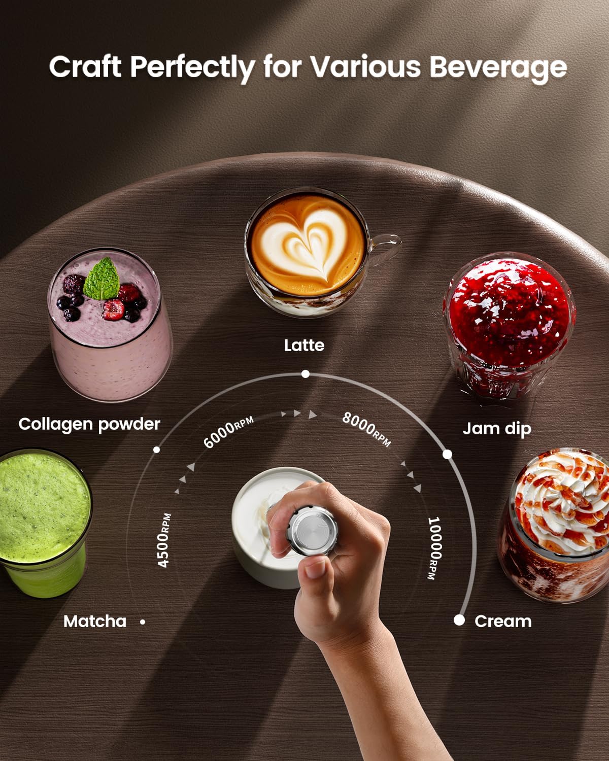 - 【Create Rich Creamy Foam in Seconds】Transform your morning coffee routine with our high-speed milk frother. Achieve smooth, creamy foam in just 10-15 seconds, perfect for busy mornings. Elevate your coffee experience with velvety milk foam every time.