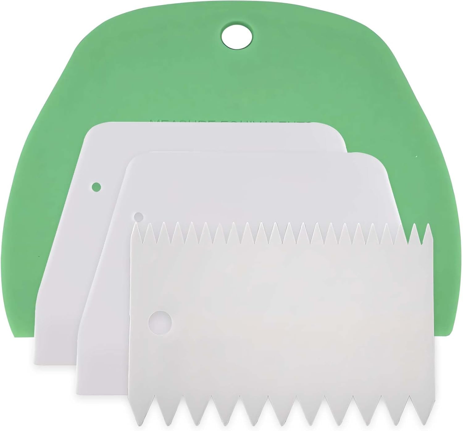 • 1.【Package Includes】You will get 4pcs dough scrapers in one package, including 2pcs soft plastic bench scraper and 1pcs hard plastic dough scraper, 1pcs plastic cake scraper.