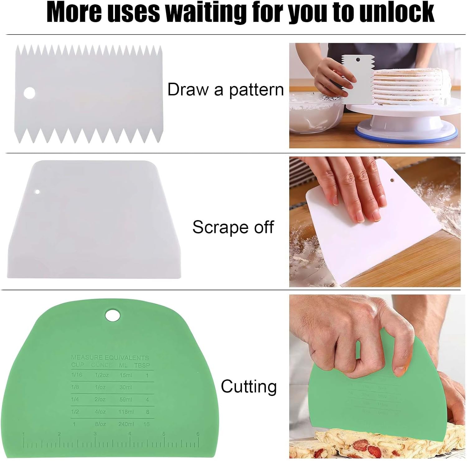 • 5.【Easy to operate】Suitable for professionals and novice bakers,non-professional baking maker,chef or cake decorating beginner.you can make the cakes & pastries that you like by using these scraper tools set, help you create different interesting food and unlimited delicious food.