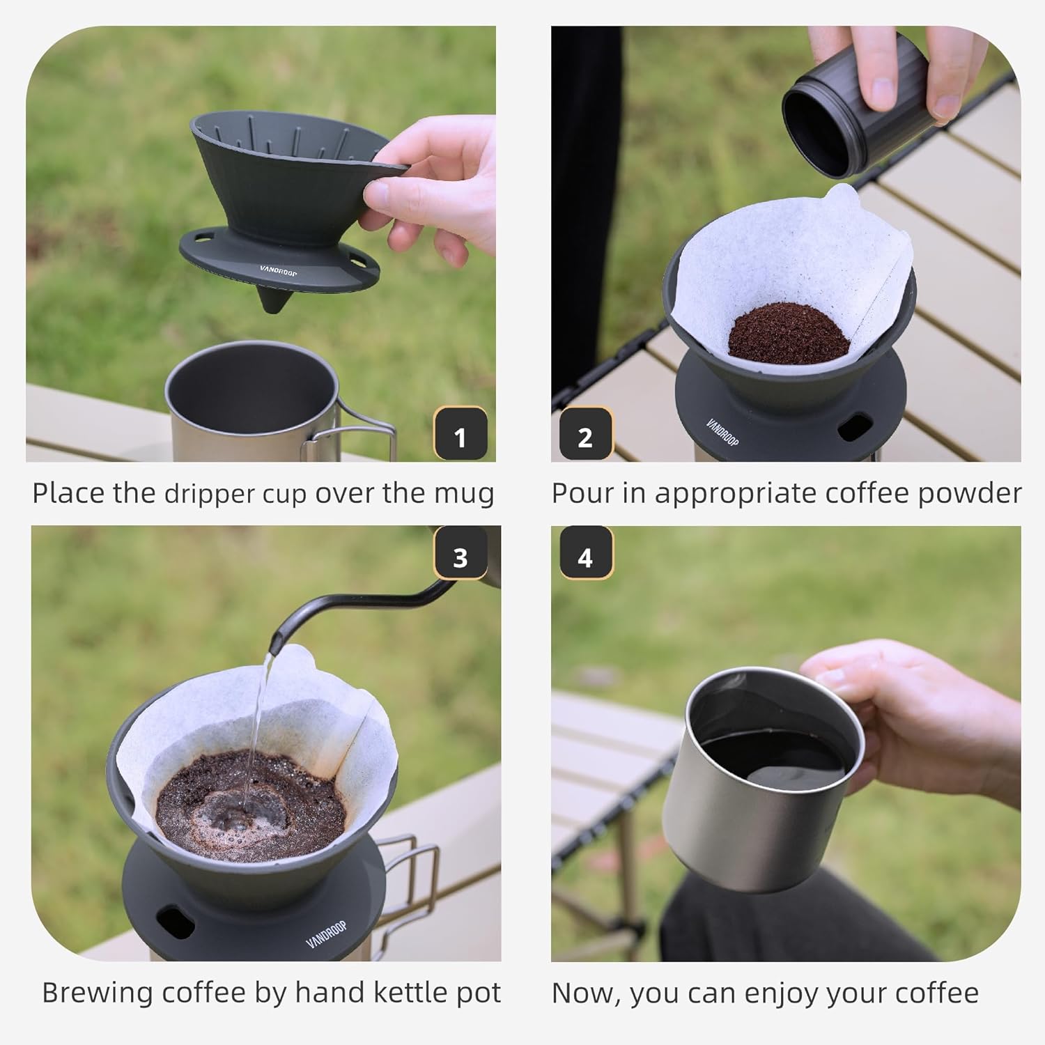 - QUALITY BRAND SERVICE: Buy Vandroop Pour Over Coffee Dripper with confidence! We want you to be completely satisfied with your order, if you run into a snag at any time, we've got ready to answer your questions 7 days a week. JUST SEND US A MESSAGE ON AMAZON.
