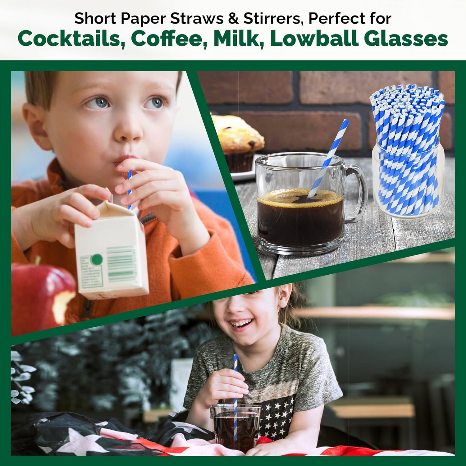 5.75 inch Blue/White Striped Paper Straws & Stirrer Sticks 500 Counts, for Cocktail, Coffee, Bars and Restaurants, Disposable