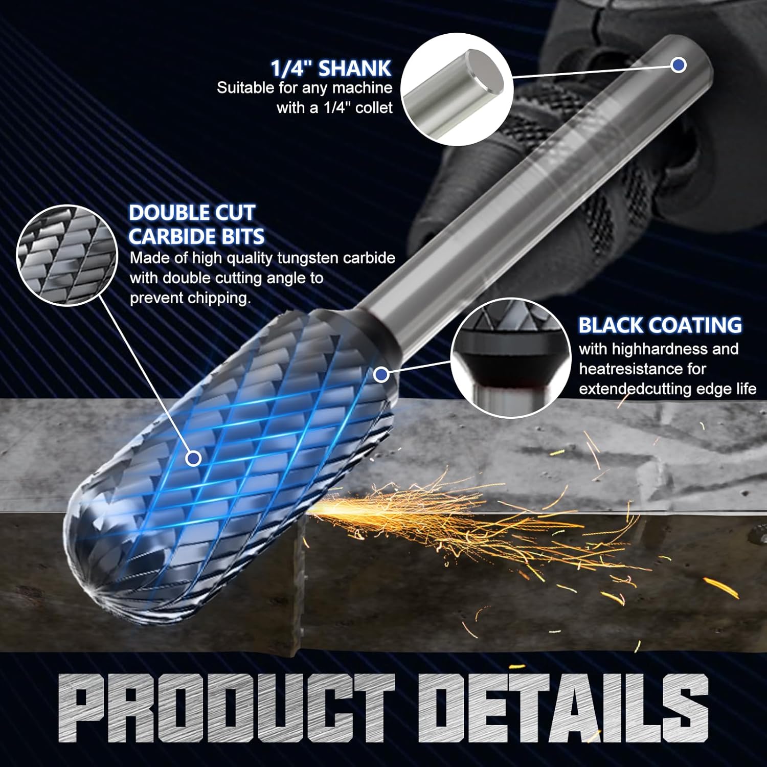 - Application: Widely used carbide rotary cutter head for steel, wood and metal working, engraving, polishing and cleaning, for use with hand-held electric or pneumatic tool drivers with 1/4 shank diameter