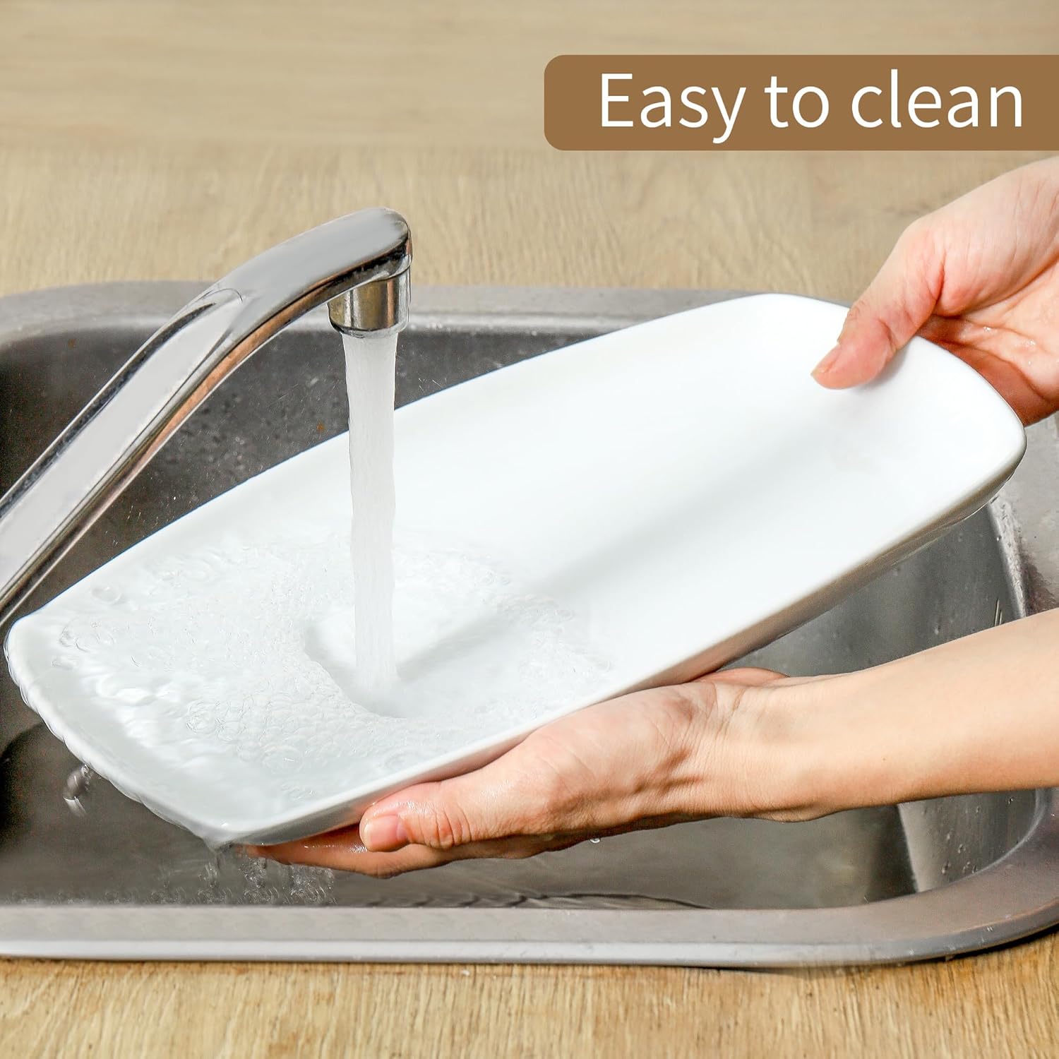 - Large Serving Platters: Each serving platter measures 11.65 x 7.5 x 1.1 inches. Set of 4 large capacity serving plates. These serving tray meet all of your need during your daily life, perfect for serving cupcakes, sushi, fruits,snacks, appetizers, turkey, sandwiches and chips/salad, dessert