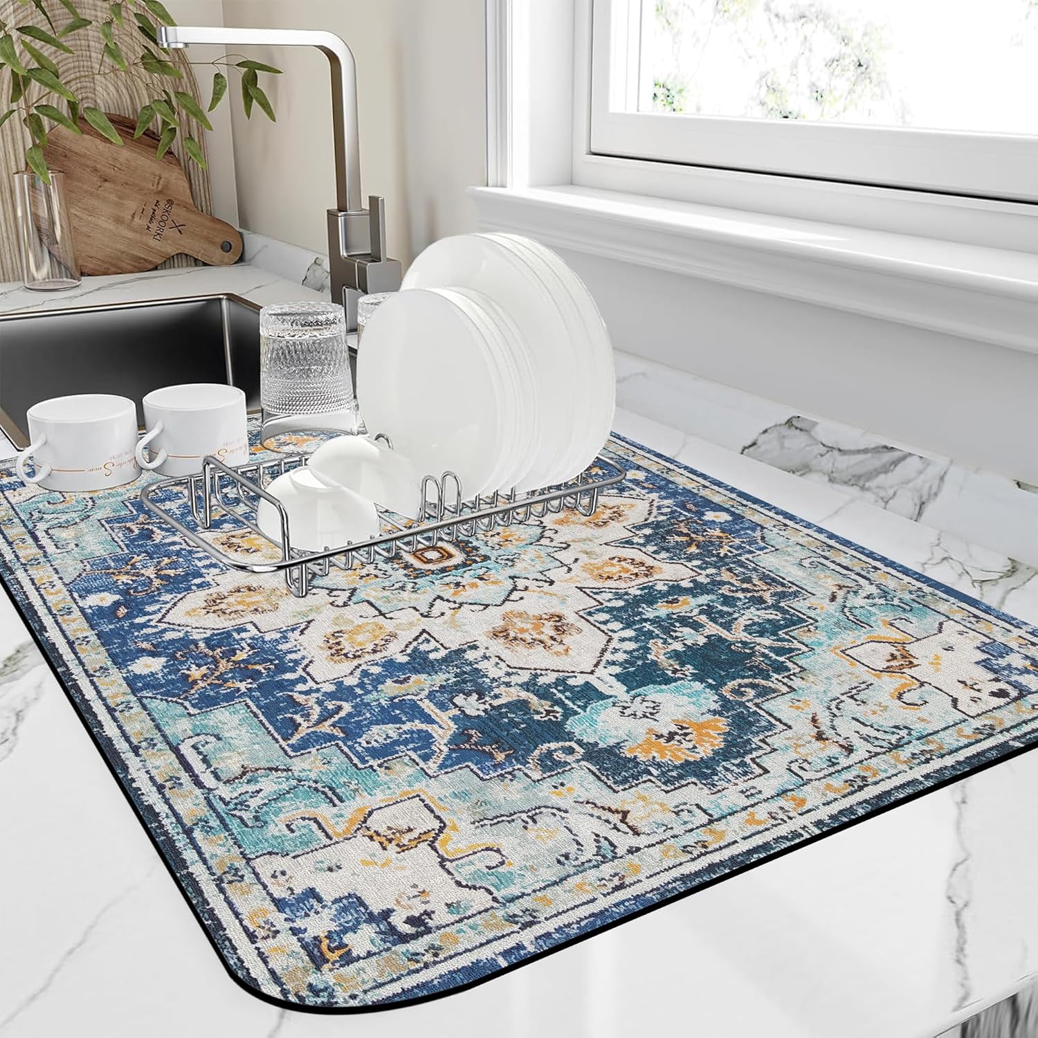 Bohemian Textile Rug Texture Dish Drying Mat,16"X24" Absorbent Fast Dish Drying Mat for Kitchen Counter Pot and Pan, Kitchen Accessories