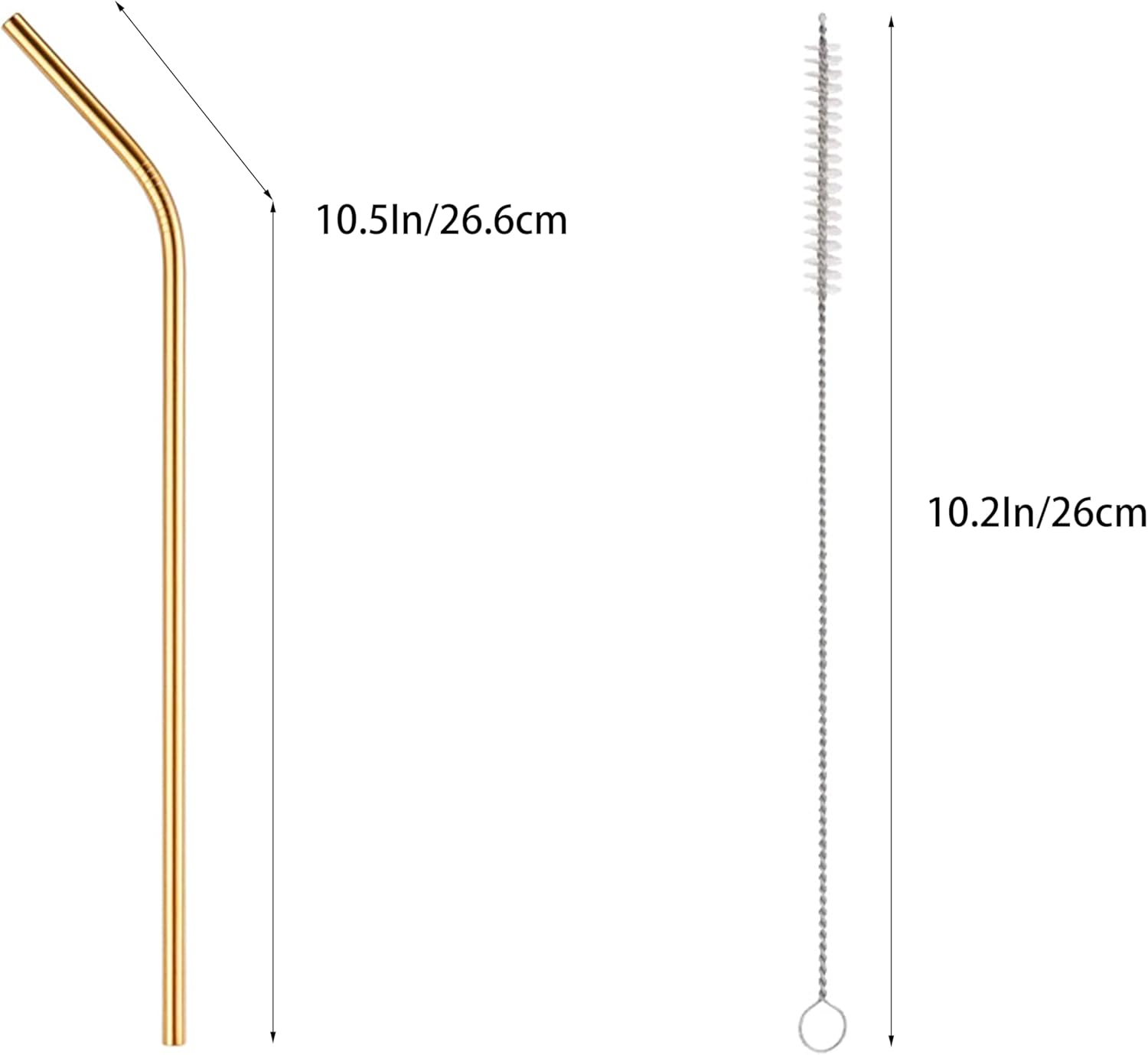 10 Pcs Stainless Steel Straws, Reusable Drinking Straws, Bent Metal Straw Sets with 2 Pcs Cleaning Brushes (Gold, 10.5 Inch)