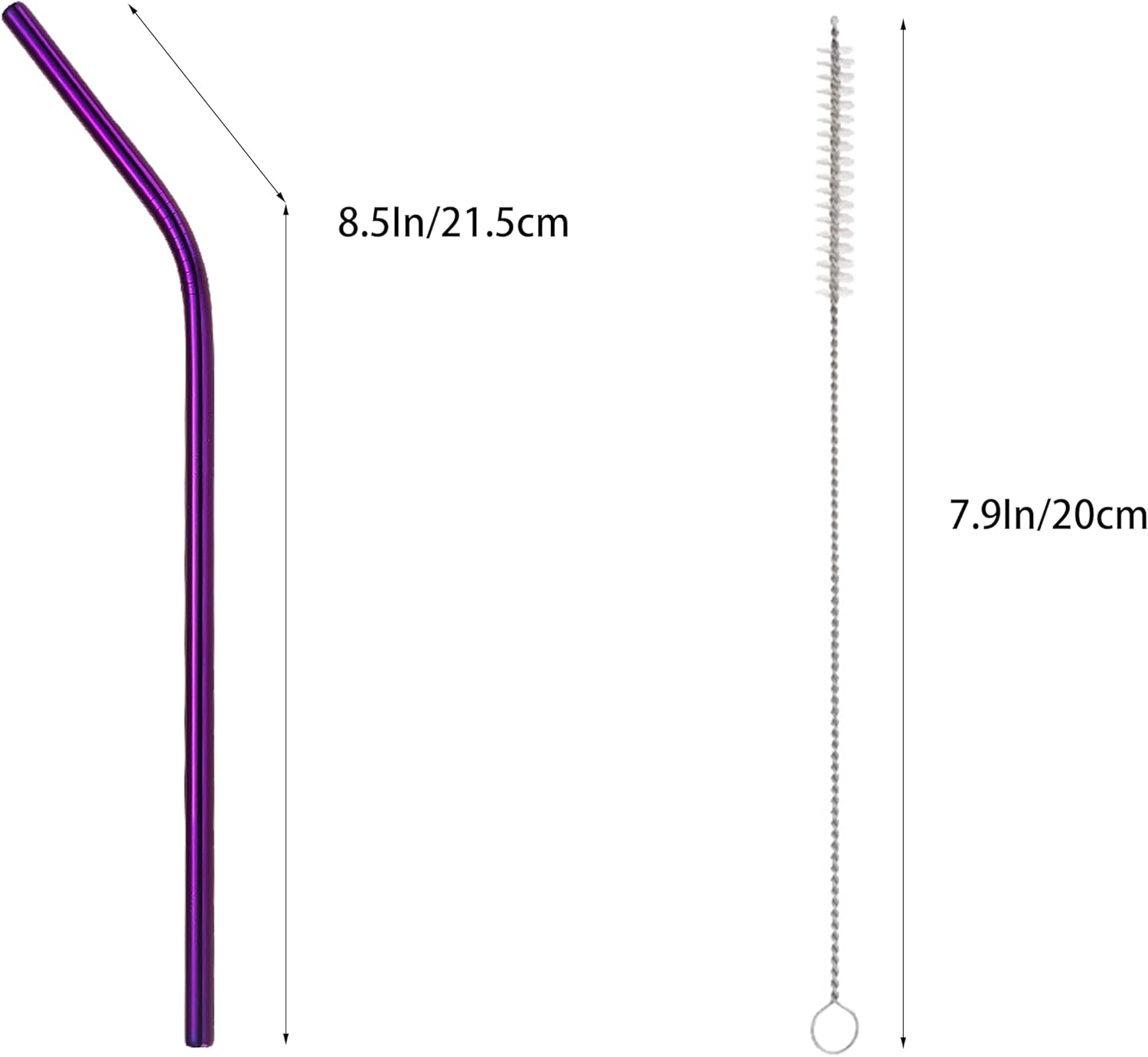 10 Pcs Stainless Steel Straws, Reusable Drinking Straws, Bent Metal Straw Sets with 2 Pcs Cleaning Brushes (Purple, 8.5 Inch)