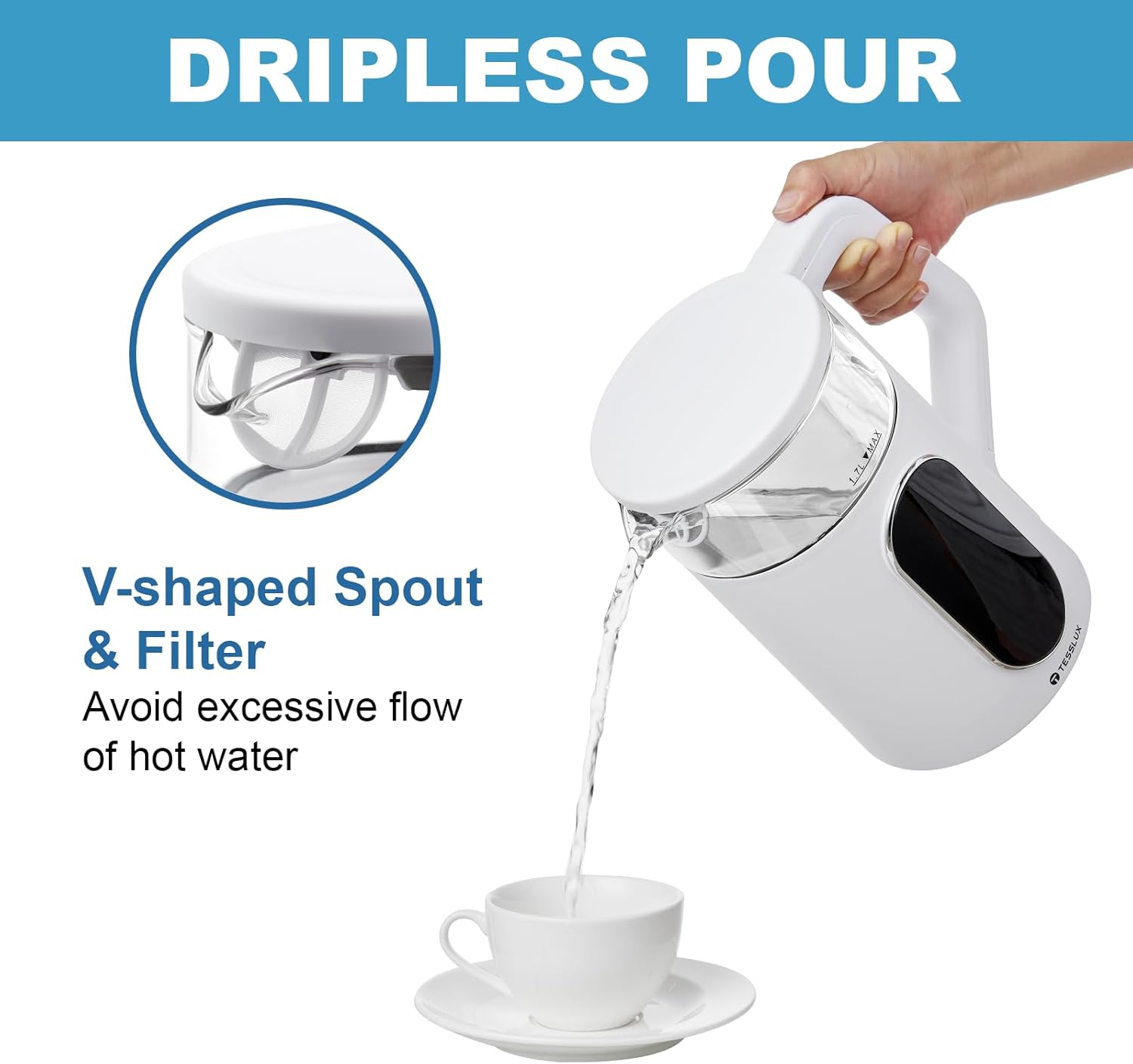 - ăAdvanced Safety with Auto Shut-OffăEquipped with an automatic shut-off feature, this kettle prevents overheating and energy waste, ensuring safety and peace of mind. Tesslux's BPA-free design prioritizes your health.