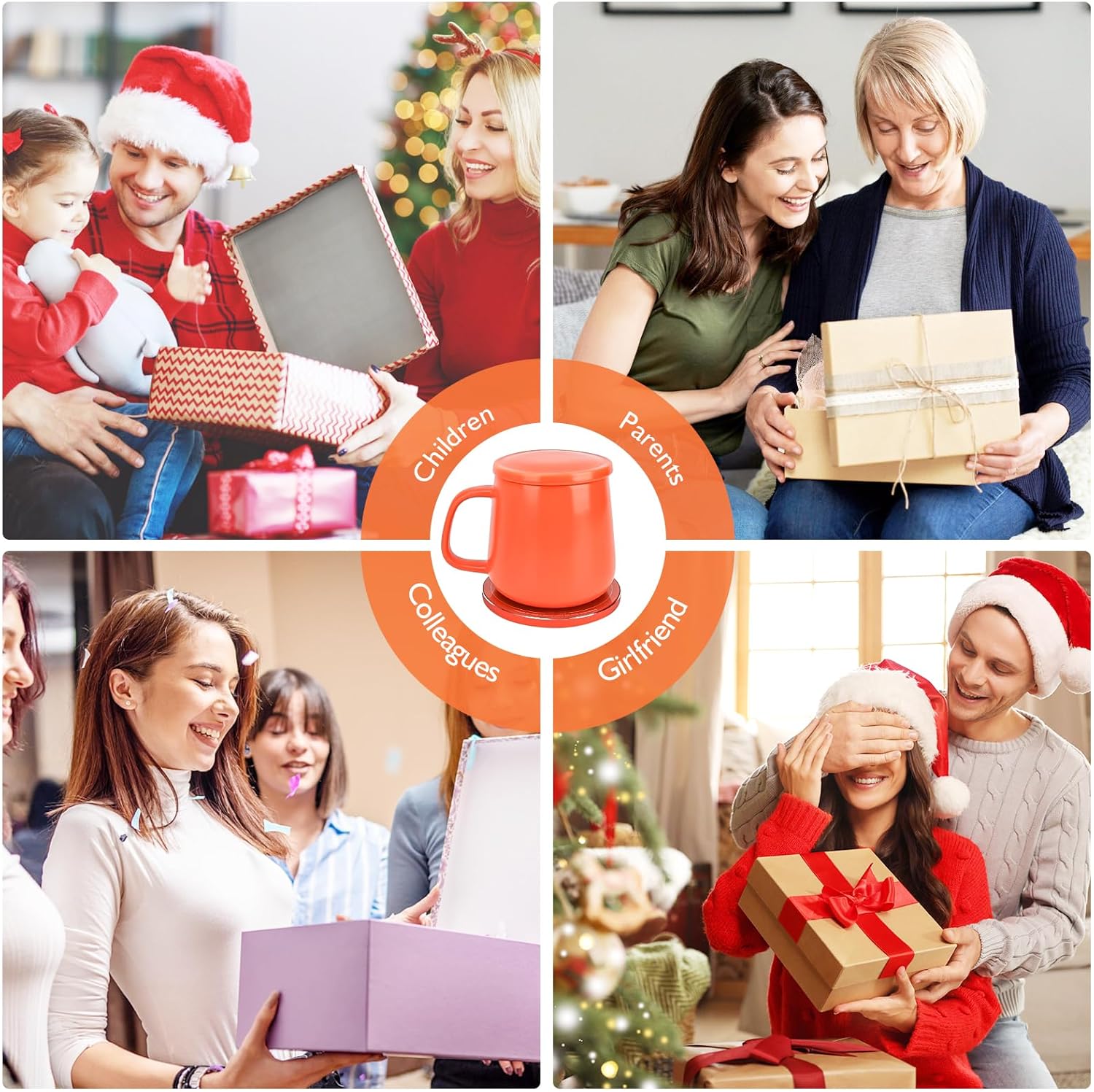- Self-Heating Function: Experience all-day warmth with our advanced self-heating mug. The built-in temperature control chipset keeps your beverages—be it coffee, tea, or hot cocoa—consistently warm at an ideal 131°F (55°C). The set includes a sleek 380 ml ceramic mug perfect for enjoying your favorite drinks.