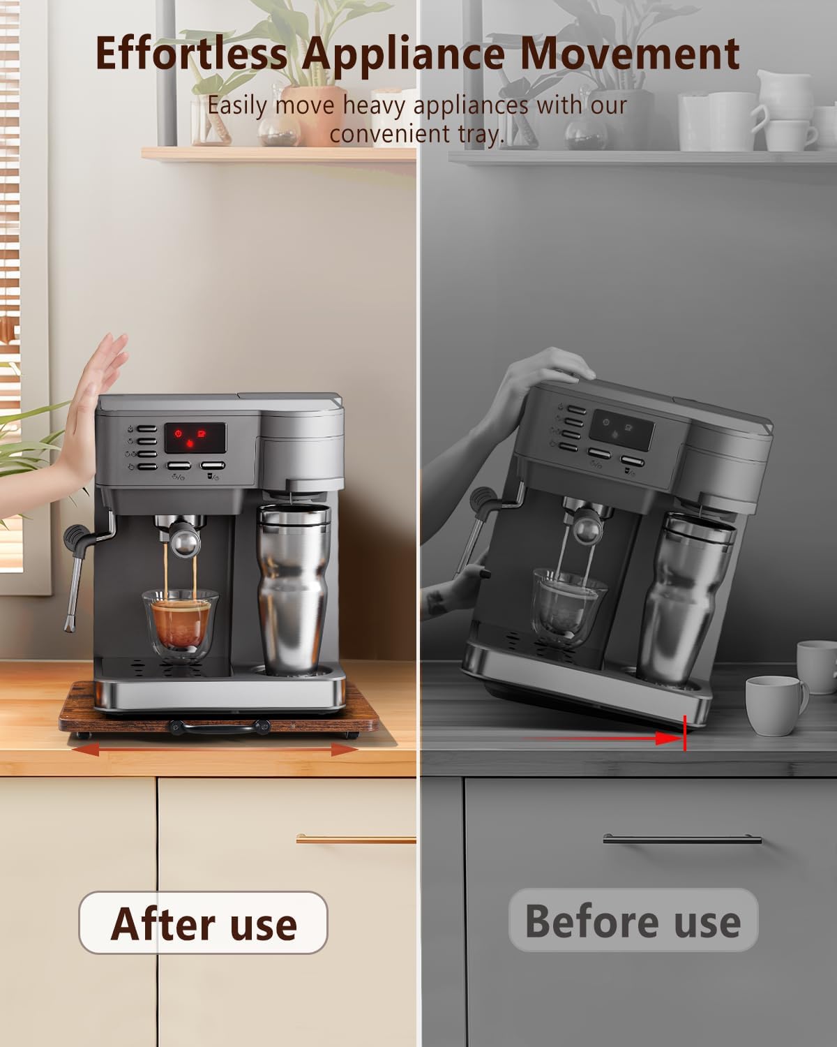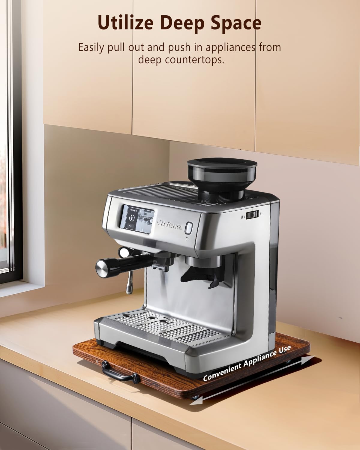- Long-lasting & Sturdy: Our Appliance Tray supports up to 40 lb; it’s a sliding coffee tray for countertop that blends with any decor; a durable coffee slider for countertop, combining strength and style for your kitchen or dining area