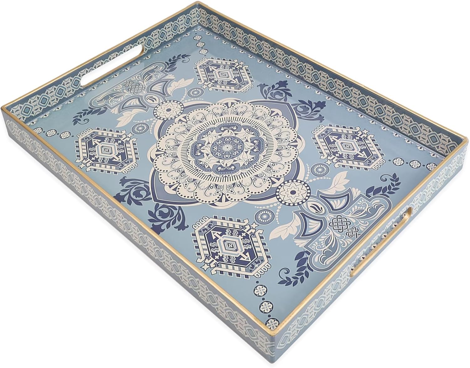 Rectangle Plastic Serving Tray with Handles, Elegant Decorative Tray for Coffee Table, Ottoman, Living Room, Kitchen, Outdoor Use. 12"*16"*1.6" B