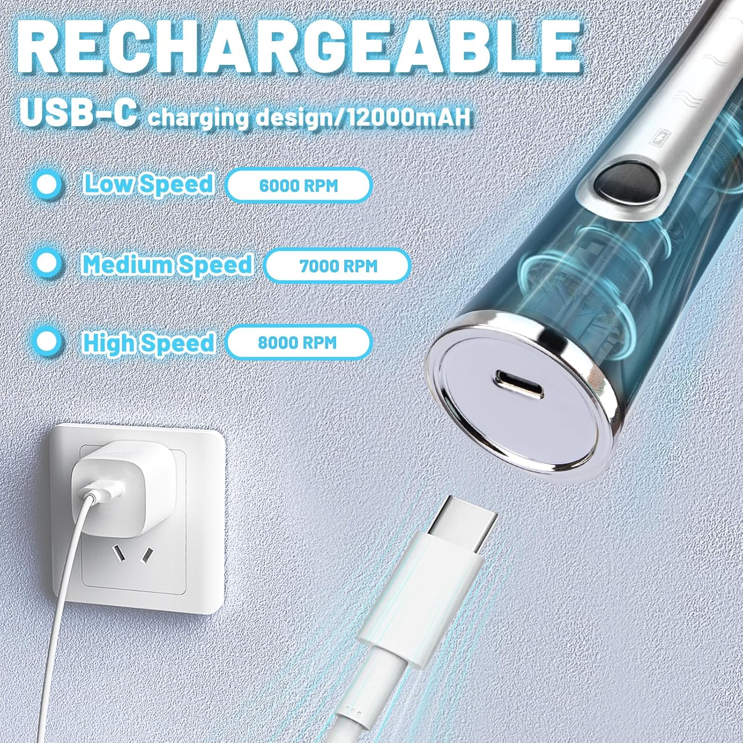 - 【Speeds You Can Choose】: Our electric milk frother mixer has 3 selectable speeds: 1st gear(6000 RPM), 2st gear(7000 RPM) and 3st gear(8000 RPM), you can choose different rotation speed according to your ingredients. In any gears, just press ON/OFF switch button for 2-3s to turn off the frother. The higher speed you choose, the less time you will spend, and the more exquisite foam you will create.