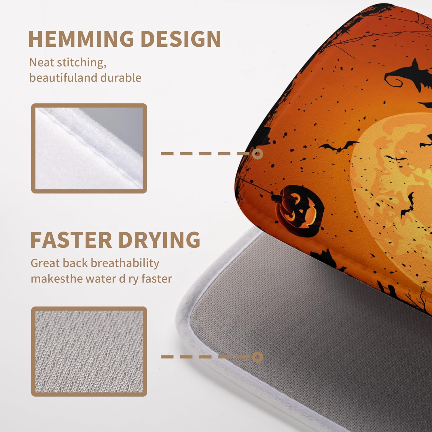 - [Easy to Clean]: This Halloween pumpkin kitchen drying mats for dishes is hand or machine washable and non-bleachable - the absorbent microfiber construction has a flexible core that won't weaken in the wash.