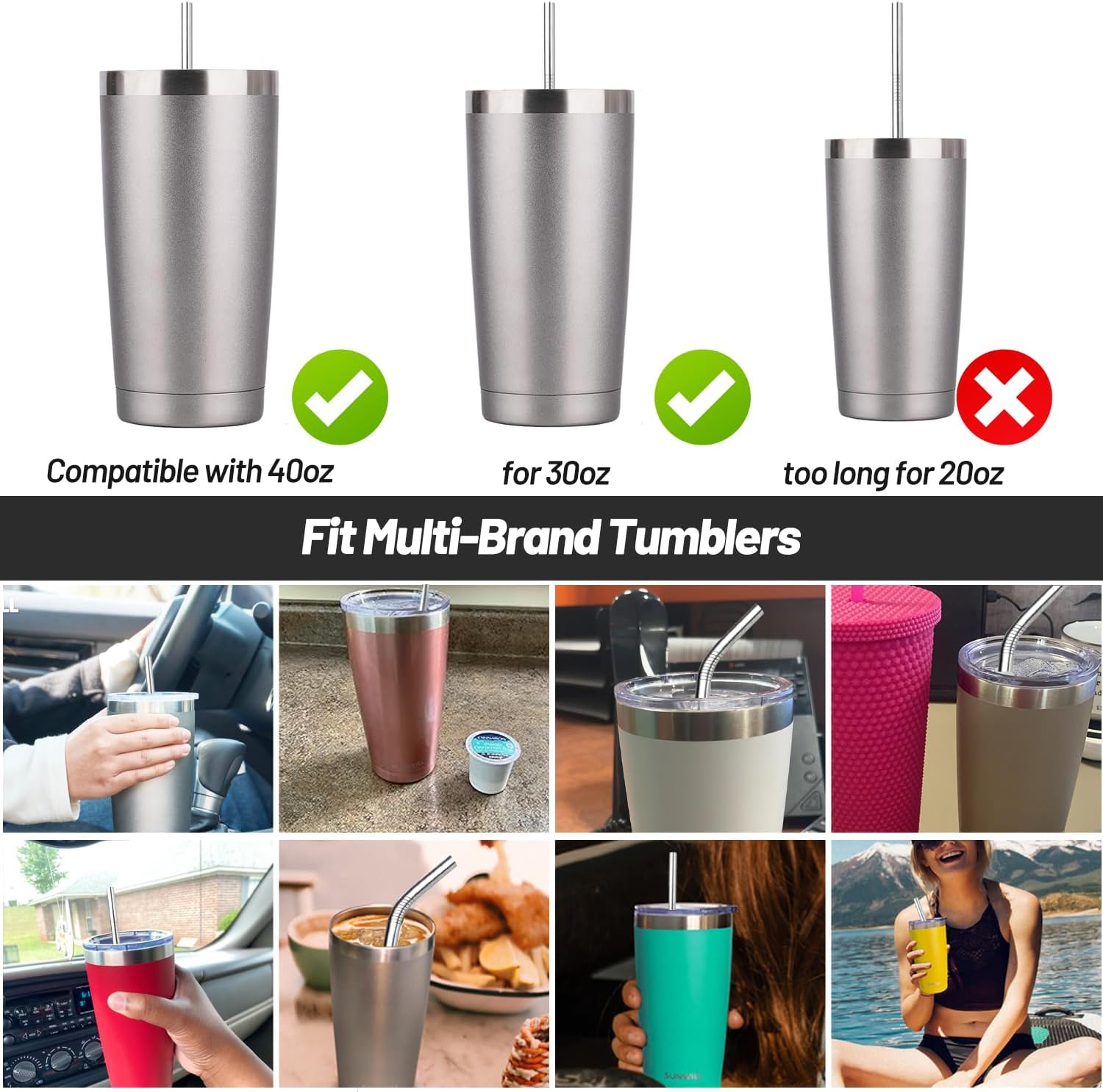 - STRAWS FOR 40 OZ TUMBLER: The extra-long design of these straws is tailored to fit the Stanley 40 oz and 30 oz tumbler, so you can enjoy your drink with ease. Also fit for other brand or other size tumbler. Be sure to double check the caliber and length before purchasing!