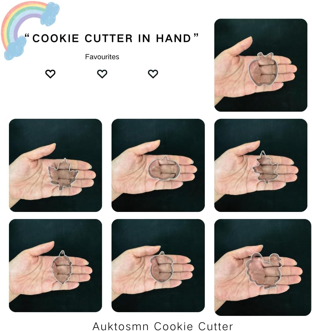 - Package:7 assorted autumn themed cookie cutter shapes, Mini Autumn Leaf, Apple, Pumkin, Acorn, Maple, Turkey.