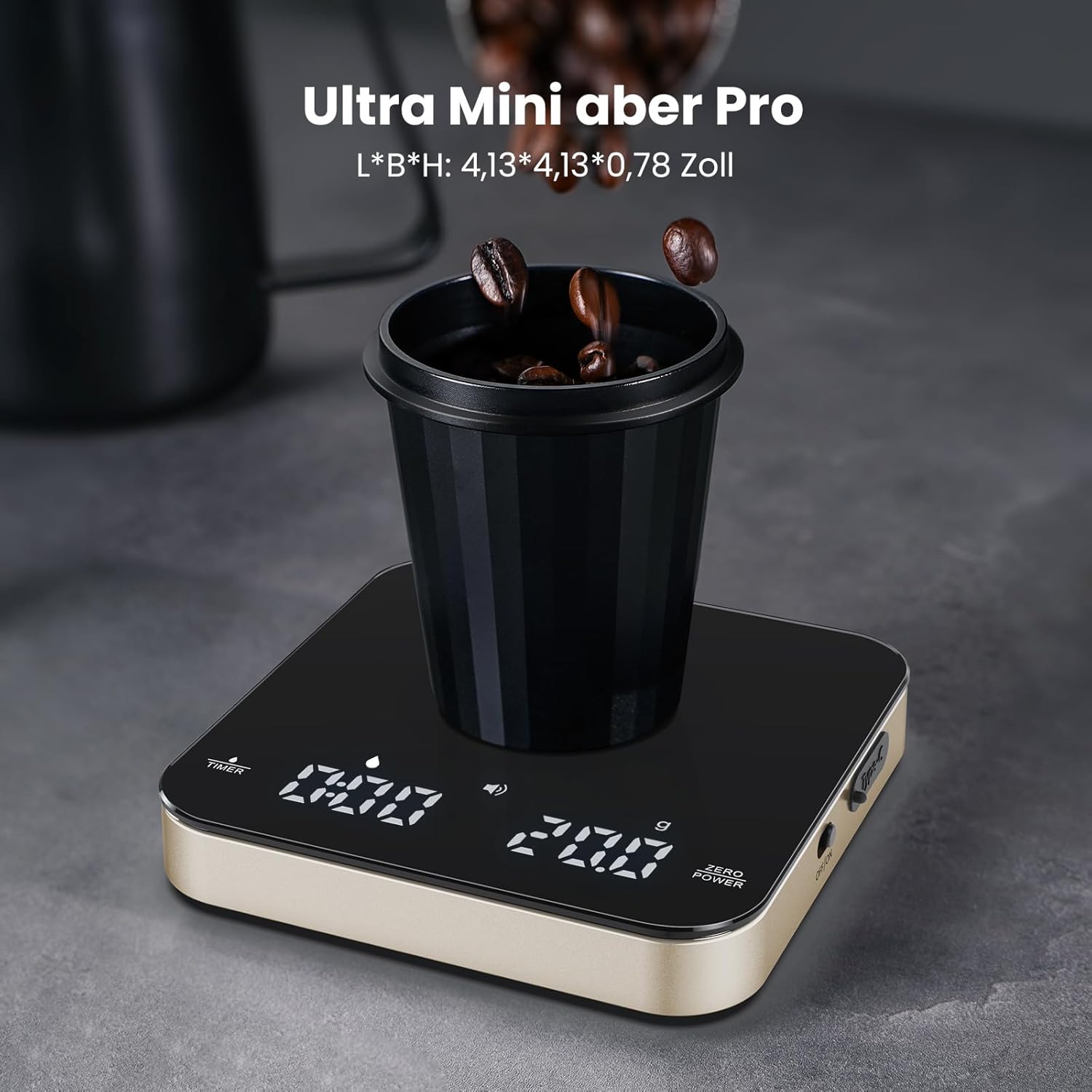 Rechargeable Mini Coffee Scale with Timer, Maestri House Espresso Scale, 2kg/0.1g Accurate Scale for Espresso and Pour-Over Coffee, Portable Digital Kitchen Scale with Automatic Timing(Black&Glod)