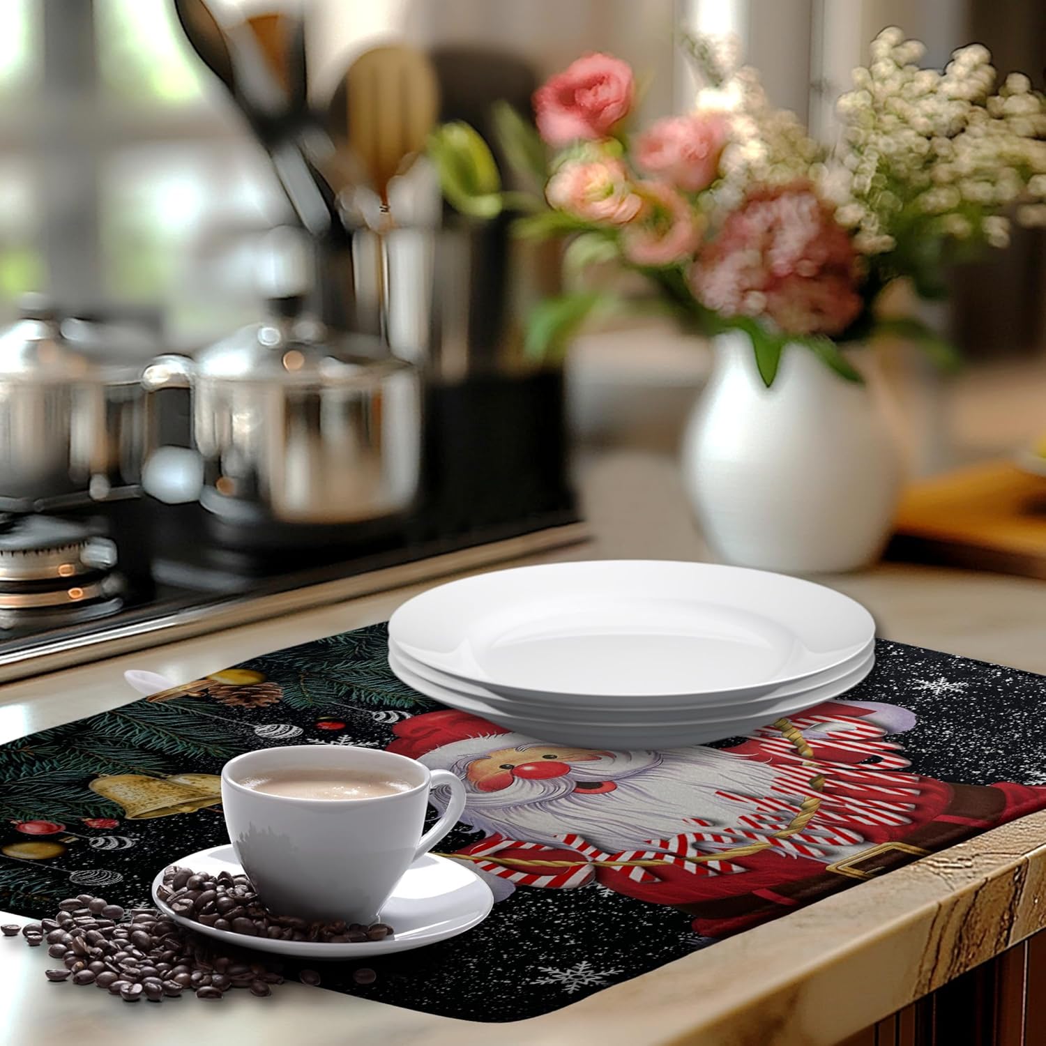 Christmas Santa Claus Dish Drying Mat Winter Drying Dish Mat for Kitchen Countertops Xmas Dish Dryer Mat Microfiber Dishes Drainer Pad Dish Drying Pad (18x24 in)