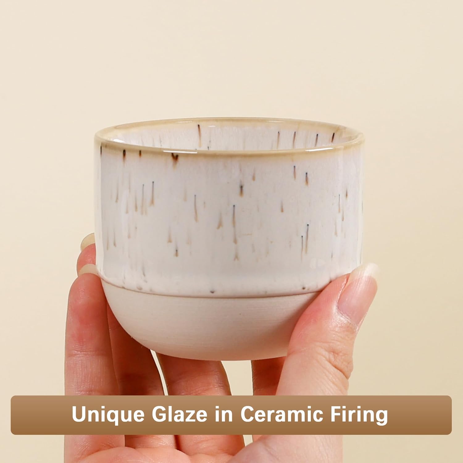 - 【Exquisite Ceramic Craftsmanship】Elevate your coffee ritual with our artisanal ceramic espresso cup set. Each piece is meticulously handcrafted to ensure a unique and elegant experience. The upper part of the cups transforms into a rich white hue during firing, adding a touch of natural warmth to your daily brew.