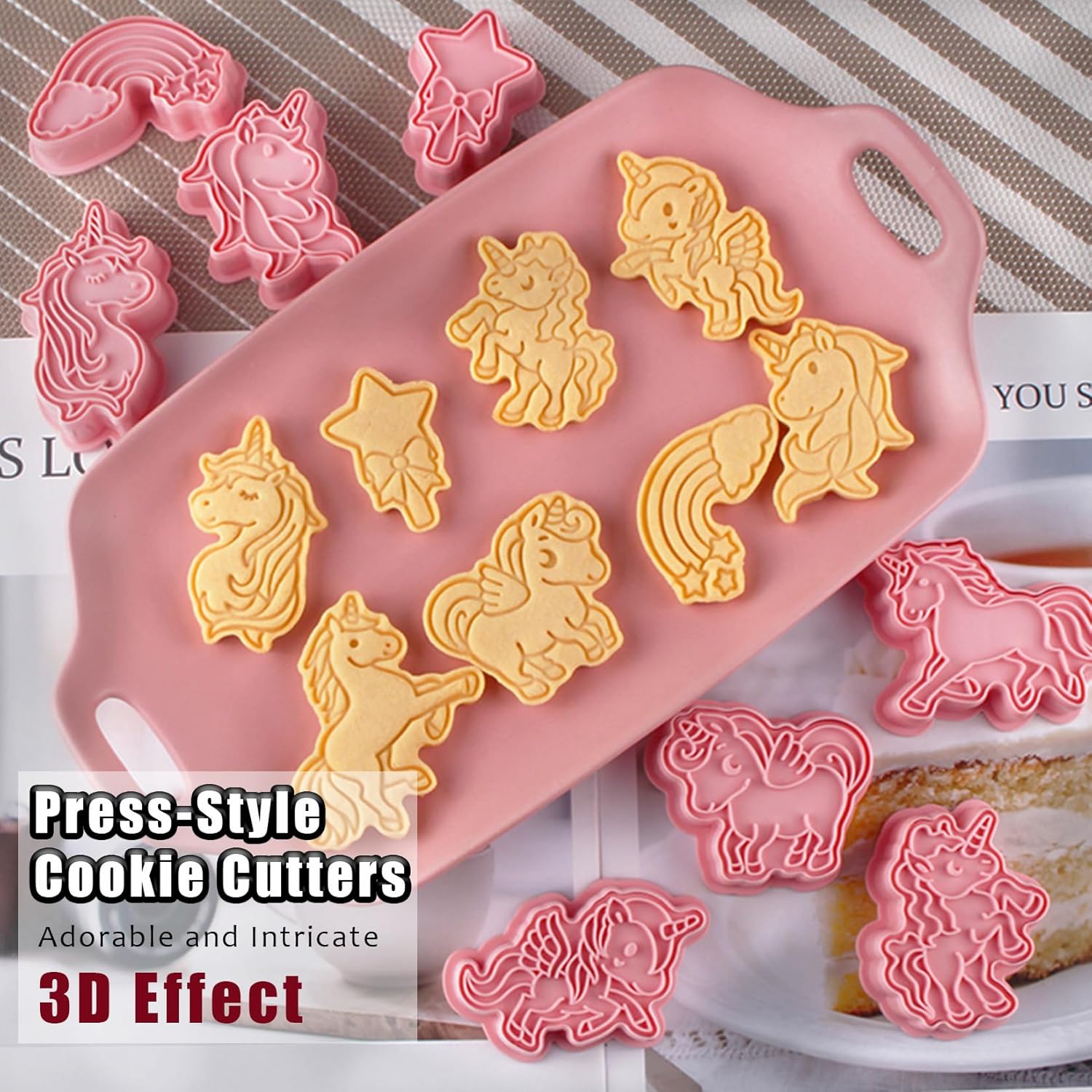 8 Pcs Unicorn Cookie Cutters Set Baking Molds 3D Unicorn Press type Cookie Cutter for Baking, Fondant, Cheese, and Pastries