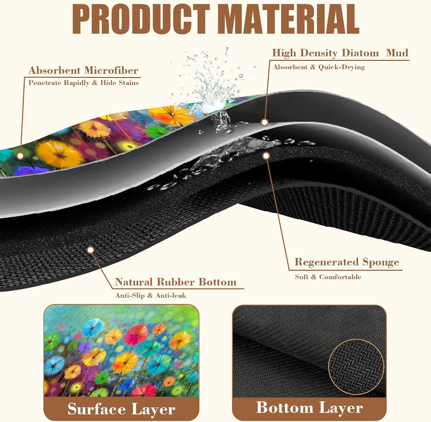 Dish Drying Mat Watercolor Rainbow Dandelion Coffee Bar Mat for Countertop Absorbent Hide Stain Rubber Backed Dish Drainer Rack Pad Espresso Machine Dining Room Decoration 15.7 x 23.6 Inch