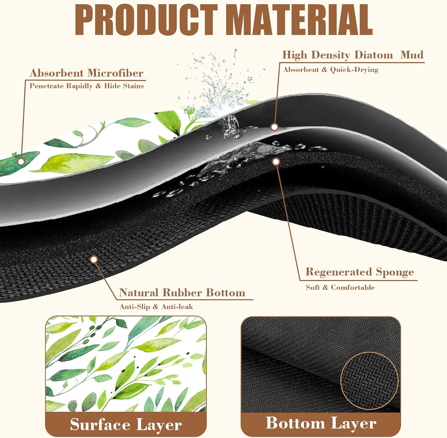 - 【Absorbent & Quick-Drying】The surface of this coffee mat is made of absorbent microfiber and the middle is made of composite sponge, which can absorb up to 4 times its weight in water and has a strong water absorption capacity. The high-density design makes it fast drying and can quickly absorb spilled liquids to keep your counter or desktop dry