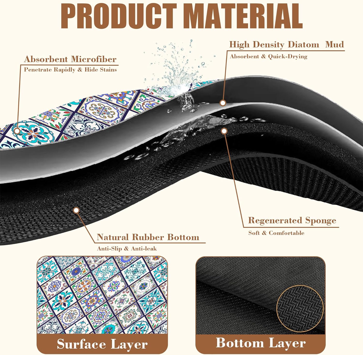 Colorful Tiles Dish Drying Mat for Kitchen Counter Hide Stain Absorbent Coffee Bar Mat Non-Slip Rubber Backed Drying Rack Pad Coffee Pot Espresso Machine Table Accessories 15.7 x 23.6 Inch