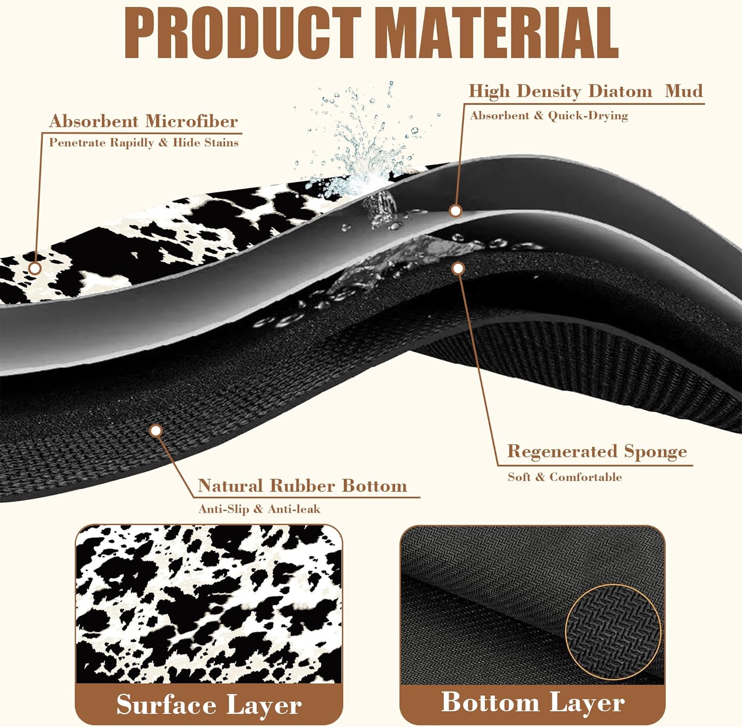 - 【Absorbent & Quick-Drying】The surface of this coffee mat is made of absorbent microfiber and the middle is made of composite sponge, which can absorb up to 4 times its weight in water and has a strong water absorption capacity. The high-density design makes it fast drying and can quickly absorb spilled liquids to keep your counter or desktop dry