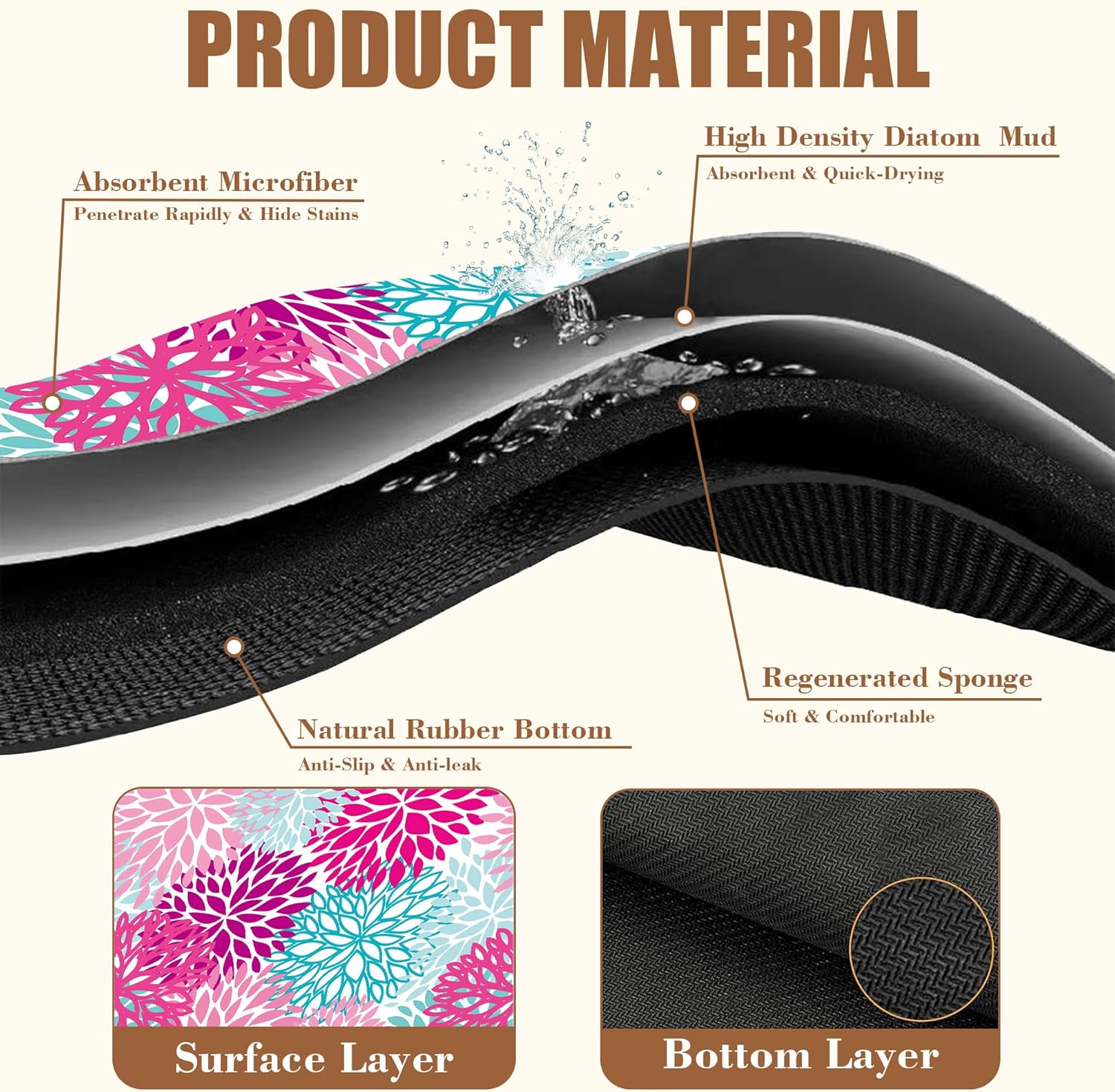 Pink Blue Chrysanthemum Flowers Dish Drying Mat for Kitchen Counter Coffee Bar Mat Hide Stain Absorbent Rubber Backed Drying Rack Pad Espresso Machine Coffee Bar Accessories 15.7 x 23.6 Inch