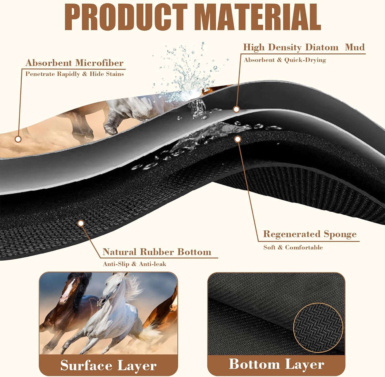 Horses Run in Desert Coffee Mat Absorbent Dish Drying Mat for Kitchen Counter Hide Stain Rubber Backed Coffee Bar Accessories Fit Under Espresso Machine Cafe Table, 15.7 x 23.6 Inch