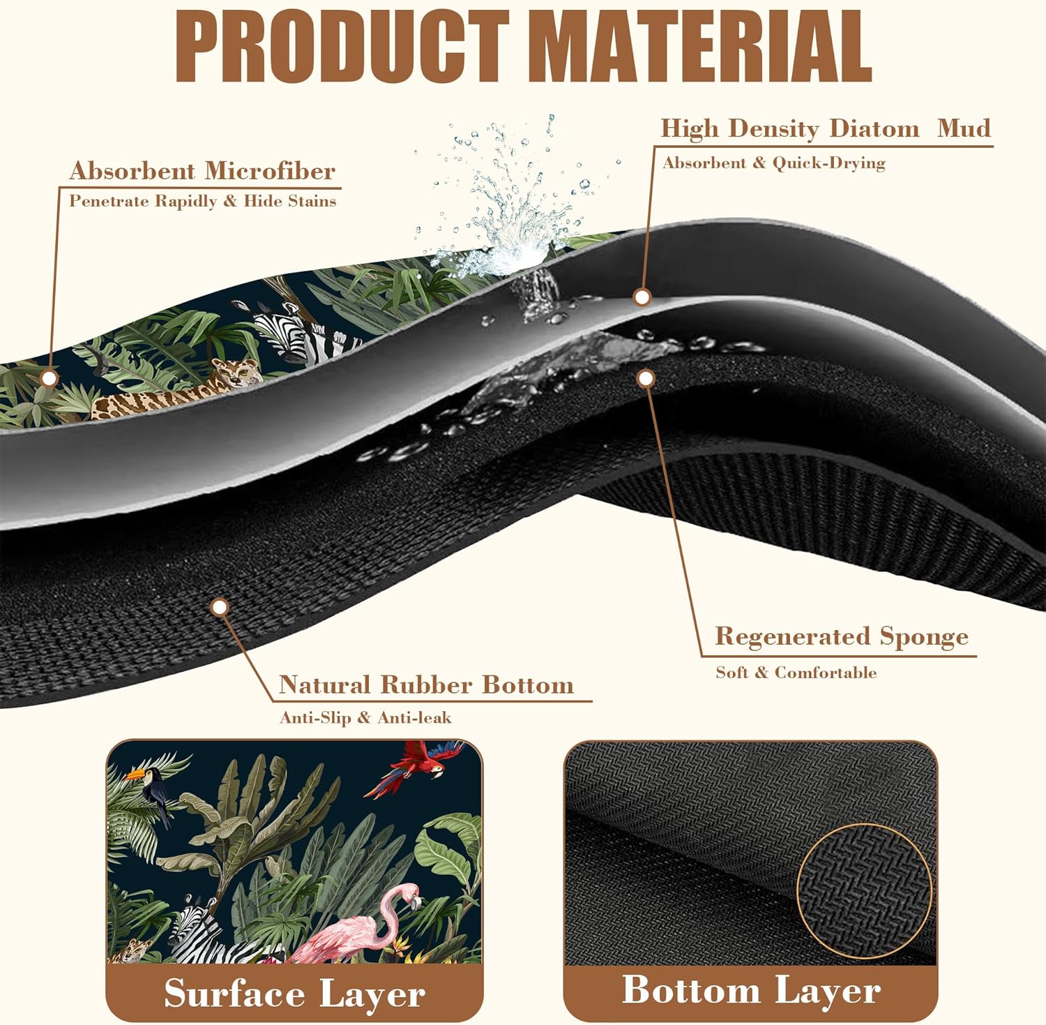 Jungle Animals Coffee Mat Tropical Dish Drying Mat for Kitchen Counter Absorbent Hide Stain Rubber Backed Coffee Bar Accessories Fit Under Espresso Machine Cafe Decor, 11.8 x 19.7 Inch