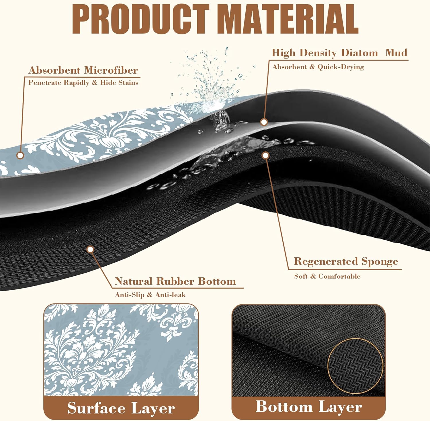 Dish Drying Mat Blue Damask Floral Coffee Bar Mat for Countertop Absorbent Rubber Backed Hide Stain Dish Drainer Rack Pad Coffee Maker Espresso Machine Dining Room Decoration 11.8 x 19.7 Inch